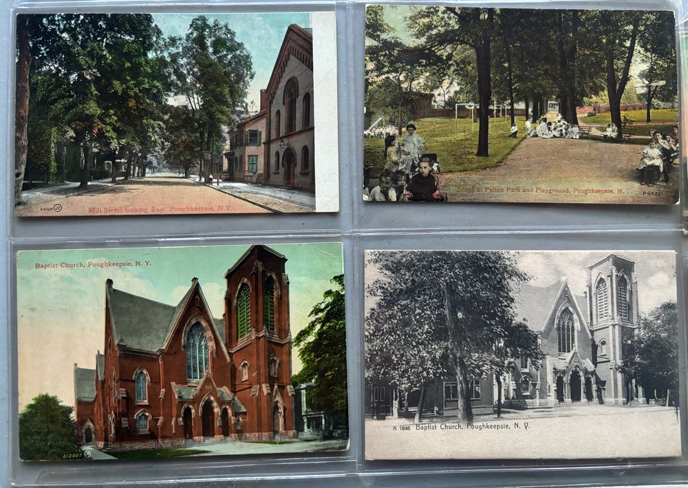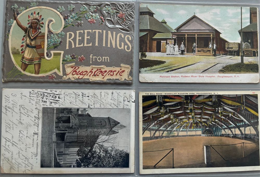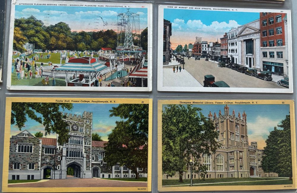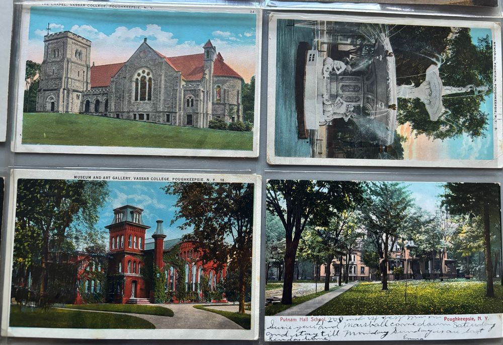 A great assortment of used postcards, many with handwritten messages from the period. All protected in plastic sleeves ready for display.