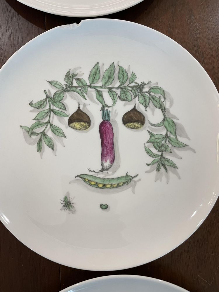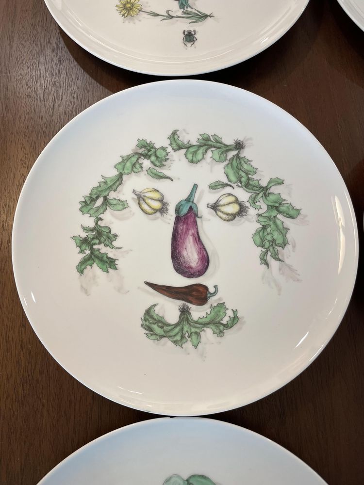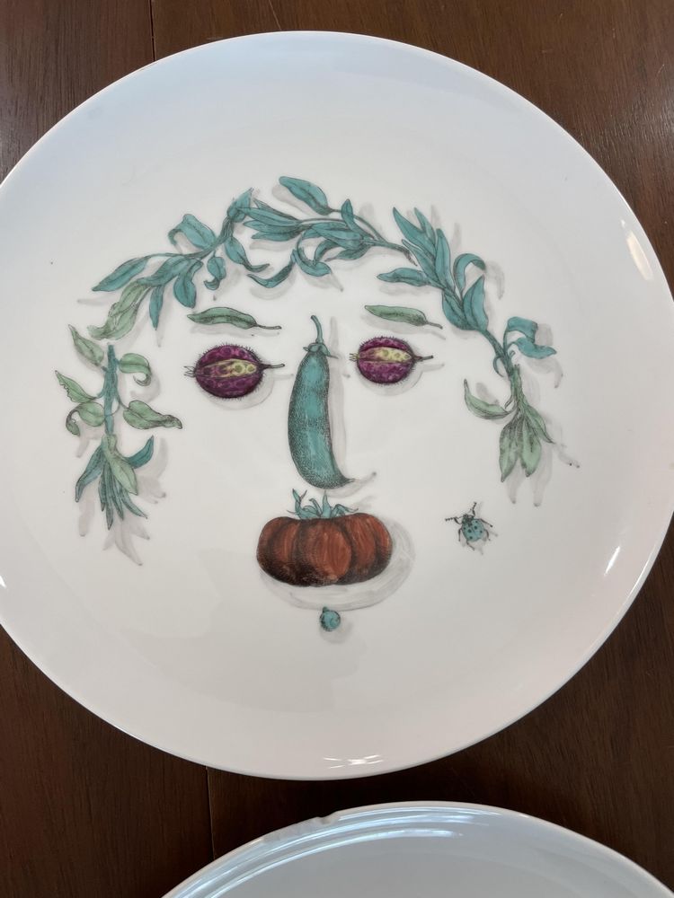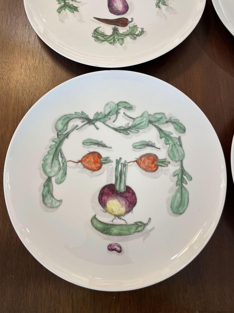 Set of 6 Piero Fornasetti Vegetable Face Dinner Plates, Pickup Only, Rhinebeck, NY