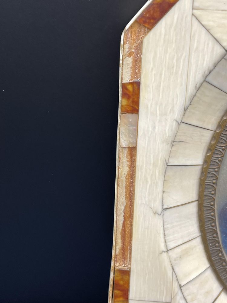 Antique hand painted portrait of Composer Franz Schubert. Beautiful hand painted and signed by the artist on the bottom right. Measures 5.75" tall by 5" wide. Some losses to the mother of pearl border along the top and left side.