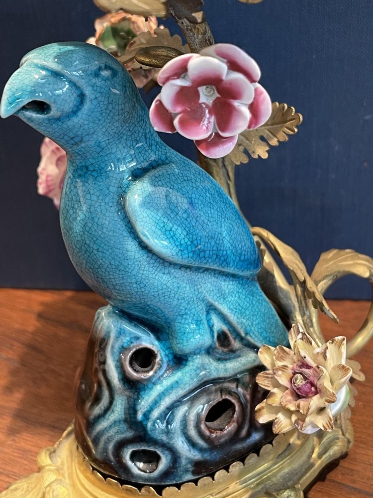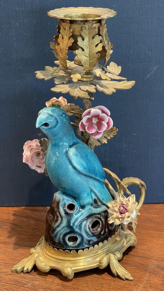 Pair Antique Metal Candlesticks w/ Porcelain Birds & Flowers, Pickup Only, Rhinebeck, NY