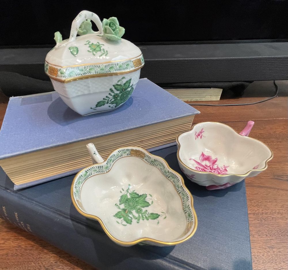 Three Herend Porcelain Leaf Dishes & Heart Shaped Box, Pickup Only, Rhinebeck, NY