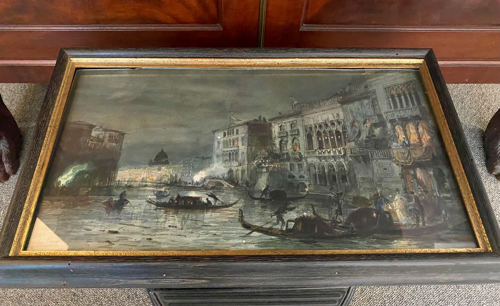 Framed Watercolor on Board of Venice at Night, Pickup Only, Rhinebeck, NY