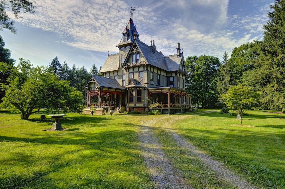 The Pines in Pine Plains was built in 1878 by lawyer William S. Eno. Designed in the Stick-Eastlake style, this elegant Victorian mansion had state-of-the-art conveniences not yet available in late 19th century homes, including gas-operated fixtures and indoor plumbing. It later became a hotel during the resort era of the early 1900s. http://www.thepines1878.com/