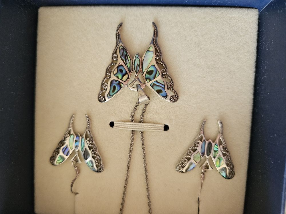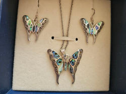 Sterling Silver Butterfly Necklace and Earring Set with Abalone Inlay.