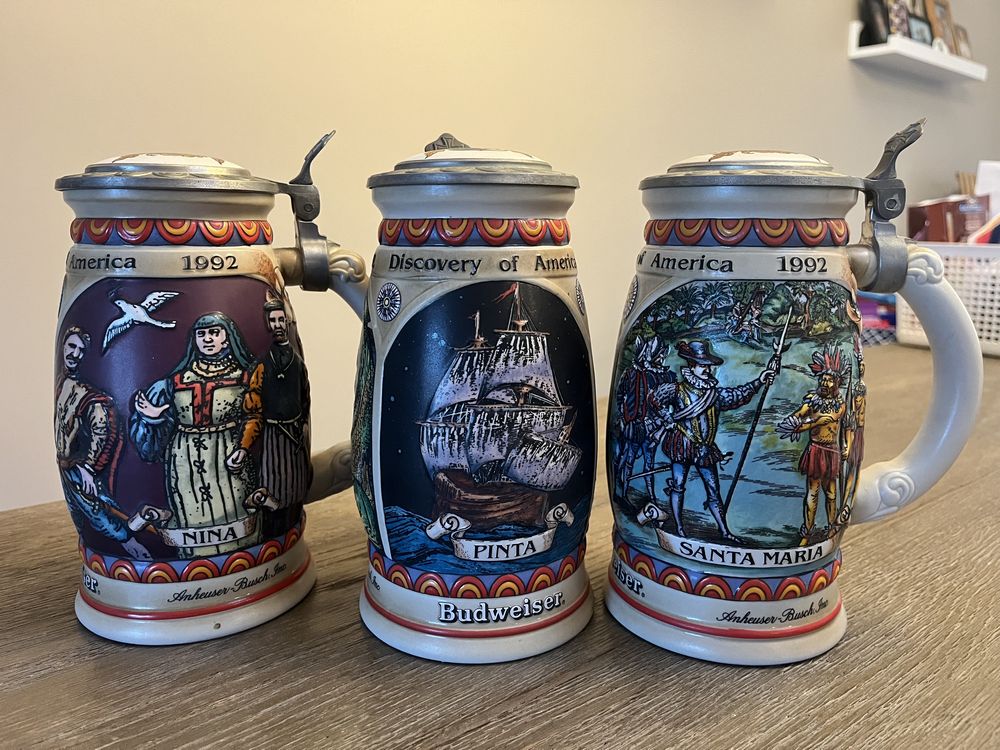 Six (6) Anheuser Busch Collector Series Beer Steins, Pickup Only, Rhinebeck, NY.