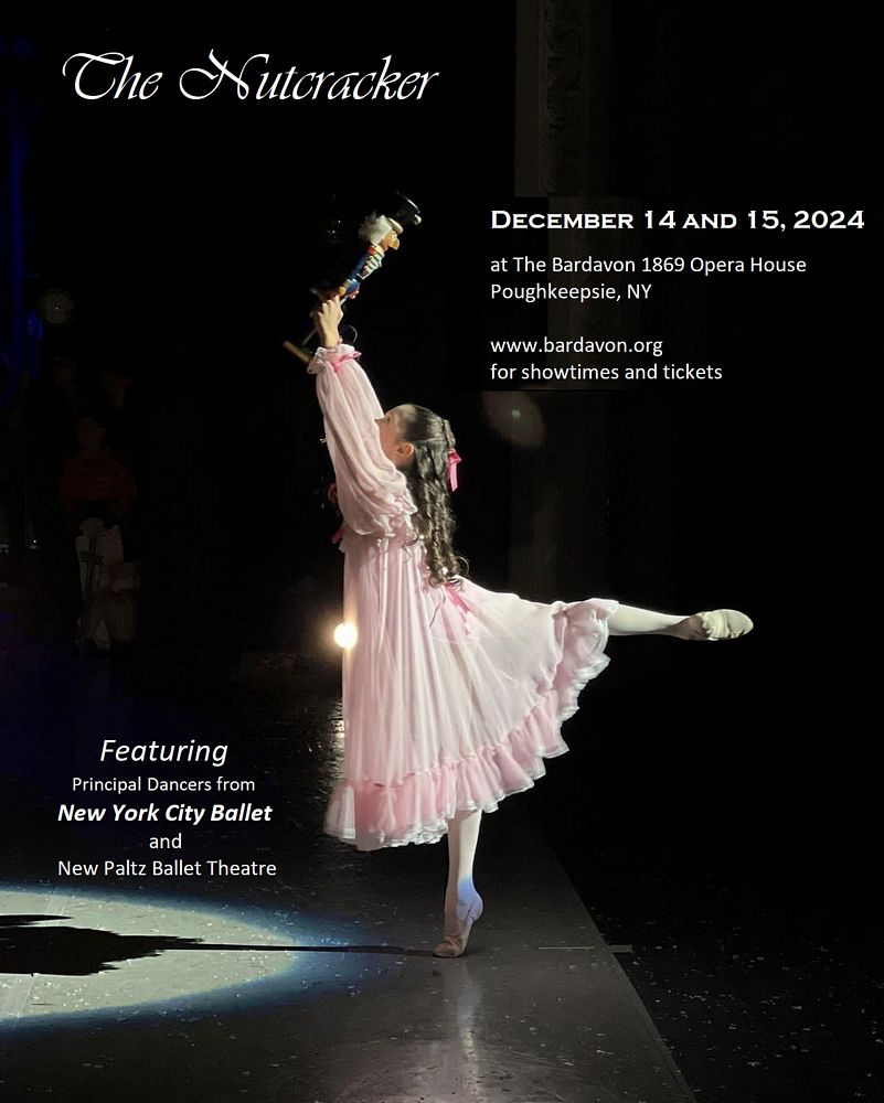 Enjoy four tickets to the New Paltz Ballet's THE NUTCRACKER on SATURDAY, DECEMBER 14, 2024 AT 7:30 PM at the Bardavon Theater, Market Street, Poughkeepsie NY.