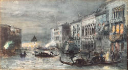 Framed Watercolor on Board of Venice at Night, Pickup Only, Rhinebeck, NY