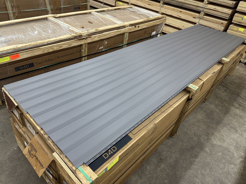Dakota D4D Boulder Gray Vinyl Siding 12'. By KP Vinyl Siding, Double Dutchlap, 24 Pieces, 2 Square Foot Per Box, Grade: 1st Quality. Weight: 2100. Sold by: Square. Sold as: Price X Quantity. Inventory #: 44013-VZD4D512