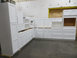 Frontier Shaker Kitchen Cabinet Set 10'x12'. Classic Layout, 30" Walls, By GHI. Additional pieces may be available for order to the high bidder. 3/4” Solid Wood Face Frame -Solid Wood Shaker Style Doors Frames and Drawer Fronts with Knots -1/2” Plywood Box Construction with Wood Veneer Interiors and Exteriors -3/4” plywood Shelves -Full overlay Doors and Drawer Fronts -3/4" Solid Wood Dovetail Drawer Box -Soft Close Full Extension Drawer Gliders -6-Way Adjustable Concealed Hinges -Soft Close. Cabinet Assembly Option IS NOT Available on this kitchen cabinet set. This set is UNASSEMBLED.  Enclosed in each cabinet set will be a Build Sheet which lists the individual cabinets in each set. As the cabinets are palletized each cabinet will be checked off and signed by our staff member to ensure that the set is complete at the time of pick-up. Please keep this Build Sheet on hand because it will be required if there is an issue with your cabinet set. Cabinet issues will not be addressed without this build sheet. Weight: X. Sold by: Set. Sold as: Price X Quantity. Inventory #: FTS-C 10X12 W30 CLS