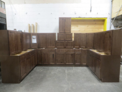 Rustic Walnut Shaker Kitchen Cabinet Set 10'x14'x10'. Standard Layout, 30" Walls, By GHI. Additional pieces may be available for order to the high bidder. 3/4” Solid Wood Face Frame -Solid Wood Shaker Style Doors Frames and Drawer Fronts with Knots -1/2” Plywood Box Construction with Wood Veneer Interiors and Exteriors -3/4” plywood Shelves -Full overlay Doors and Drawer Fronts -3/4" Solid Wood Dovetail Drawer Box -Soft Close Full Extension Drawer Gliders -6-Way Adjustable Concealed Hinges -Soft Close. Cabinet Assembly Option IS NOT Available on this kitchen cabinet set. This set is UNASSEMBLED.  Enclosed in each cabinet set will be a Build Sheet which lists the individual cabinets in each set. As the cabinets are palletized each cabinet will be checked off and signed by our staff member to ensure that the set is complete at the time of pick-up. Please keep this Build Sheet on hand because it will be required if there is an issue with your cabinet set. Cabinet issues will not be addressed without this build sheet. Weight: X. Sold by: Set. Sold as: Price X Quantity. Inventory #: RWS-DC 10x14x10 W30 STD