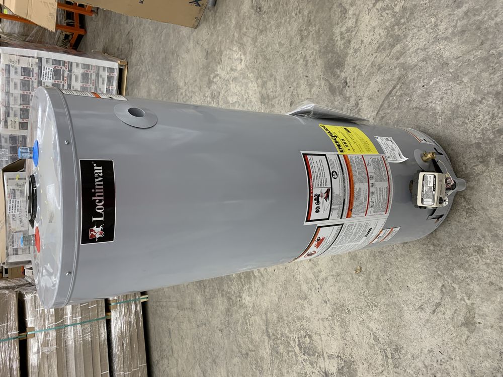 40 Gallon Natural Gas Water Heater. By Lochinvar, 40000 BTU, 62.31" Tall, 20" Diameter, Grade: 1st Quality. Weight: 145. Sold by: Piece. Sold as: Price X Quantity. Inventory #: 11103-NG 40