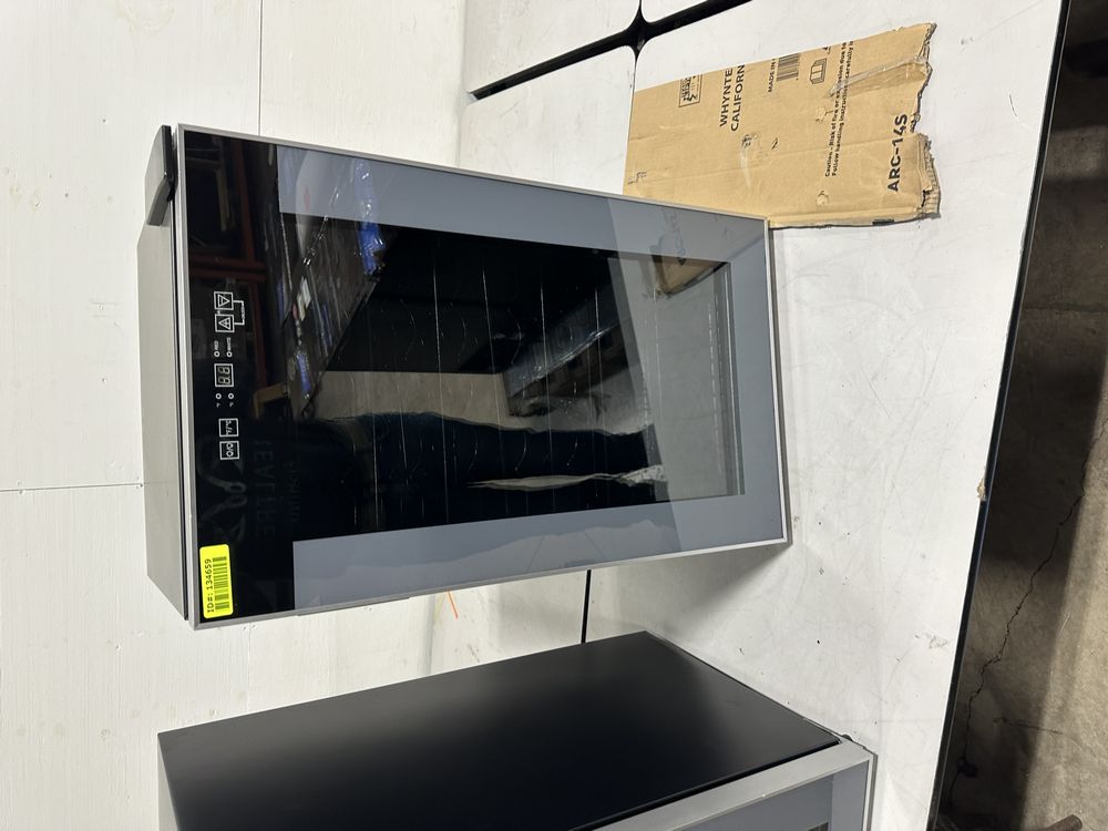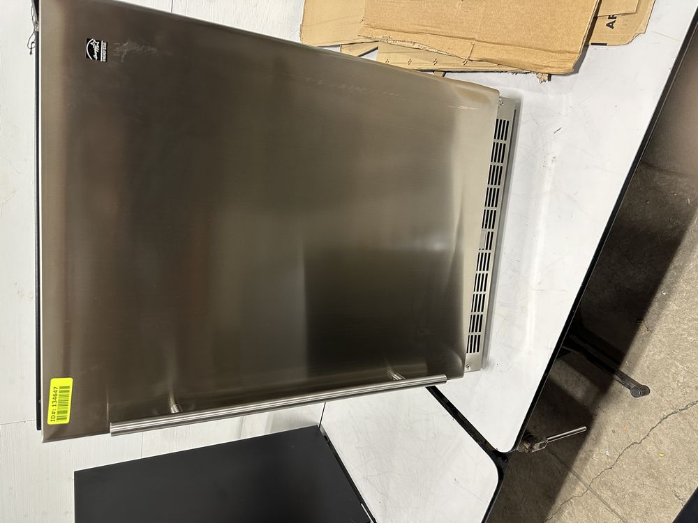 Danby Silhouette 24" Built-in Beverage Center/Wine Cooler 5.Cu.Ft. Ding by right hinge. Dent in lower rear left and right corners. Refurbished. Model: DBC2760BLS. Weight: . Sold by: . Sold as: Price X Quantity. Inventory #: