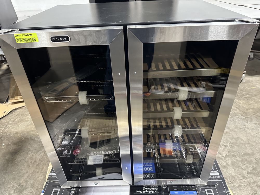 Whynter 24" Built-In French Door Dual Zone Beverage Cooler. Small scuffs to top, Multiple dings to left side, small dents/bending to right panel. Refurbished. Model: BWB-2060FDS. Weight: . Sold by: . Sold as: Price X Quantity. Inventory #: