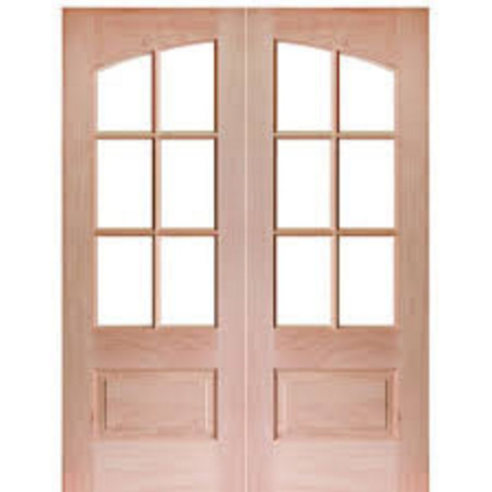 Exterior 6-Lite French Mahogany Square Top Door, RH. Pre-Hung: 2 36"x80" Doors, Sill 5 9/16", Rough Opening 75 3/4"W x 83 1/4"H, Grade: 1st. Weight: x. Sold by: Door. Sold as: Price X Quantity. Inventory #: 5213-PT-M29-D RH