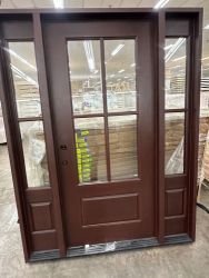 Stained, Entrance Door 36"x80" With 2 Sidelites, LH. Pre-Hung 2-12" 2-Panel Sidelites, Door is 4 Lite, Actual Dimensions 63 1/2"x81 1/2", Grade: A. Weight: 245. Sold by: Door. Sold as: Price X Quantity. Inventory #: 5210-EXT FG 1-3-1 LH