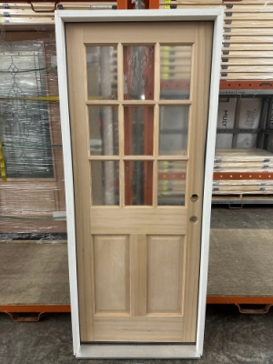 Doug Fir Exterior 9 Lite Door 32"x80" LH. Unfinished, Single Pane Glass, Prehung, Grade: 1st Quality. Weight: X. Sold by: Door. Sold as: Price X Quantity. Inventory #: 5219-EXT FIR 9L 32 LH