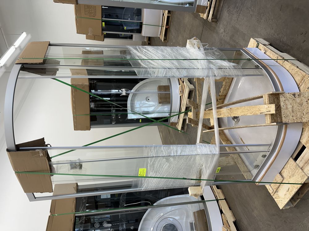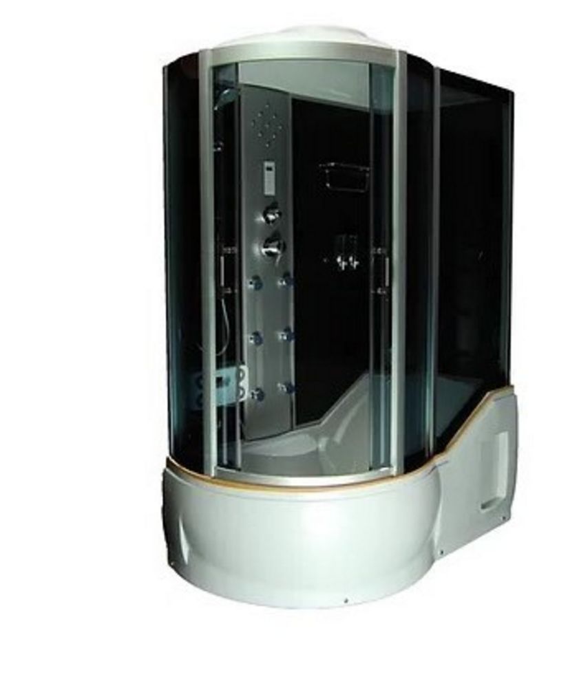 Black Luxury Shower/Tub 36"x60" LHD Jetted, With Many Accessories. Left Hand Drain (LHD) 86" Tall, 10" rainfall shower head, Height adjustable 4-pattern handheld shower head, 6 massage heads, Foot massager, Radio, Overhead LED lights, Ventilation fan, Soft tub pillow, Mirror, shampoo dispensers, and shelves, Plumbing components (fittings and hoses for shower heads and jets). Steel beam enforced floor tray, Extruded aluminum frames, Fiberglass enforced ABS (engineer-graded) plastics walls, 5 mm thick tinted tempered glass. This shower is unassembled, the assembly option is not available on this set.  . Weight: X. Sold by: Piece. Sold as: Price X Quantity. Inventory #: 5090-S-1630 BLK LHD