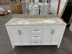 Stockham White 60"x21"x34" Double Basin Bathroom Vanity. By Home Decorators Collection, Granite Vanity Top Included, Actual Dimensions 60"x21 1/2"x34" Grade: 1st Quality. Weight: 355. Sold by: Piece. Sold as: Price X Quantity. Inventory #: 5081-19043-V60-WT-T