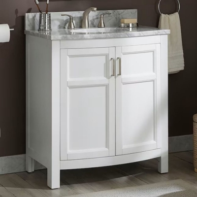 Moravia White 30"x34"x20" Single Basin Vanity. By Allen & Roth, With Carrara Marble Top, 4" Backsplash Included, Grade: 1st Quality. Weight: 168. Sold by: Piece. Sold as: Price X Quantity. Inventory #: 5081-50806-1083180