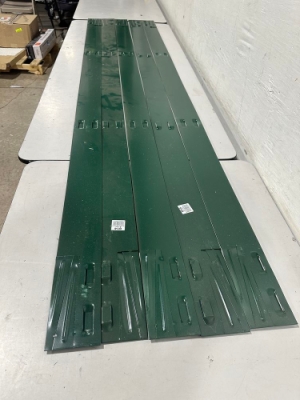 Colmet 8' 14-Gauge x 4 in. Green Steel Landscape Edging (5-Pack). Edging only no stakes. Color blends with garden and lawn surroundings or mulch, Powder coated steel helps to prevent rust and corrosion, Panels (sold separately) interlock to create required length. Weight: . Sold by: . Sold as: Price X Quantity. Inventory #: