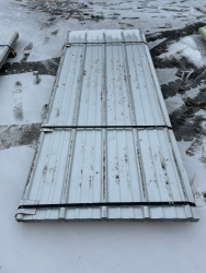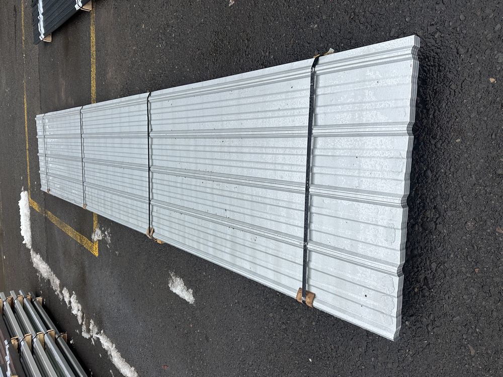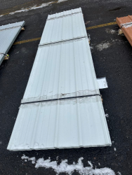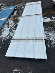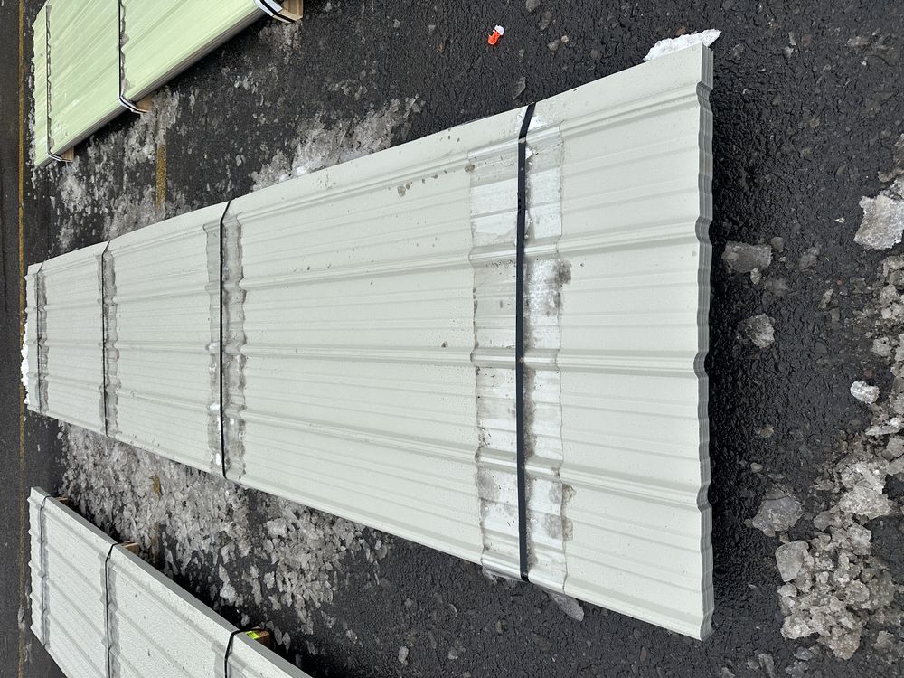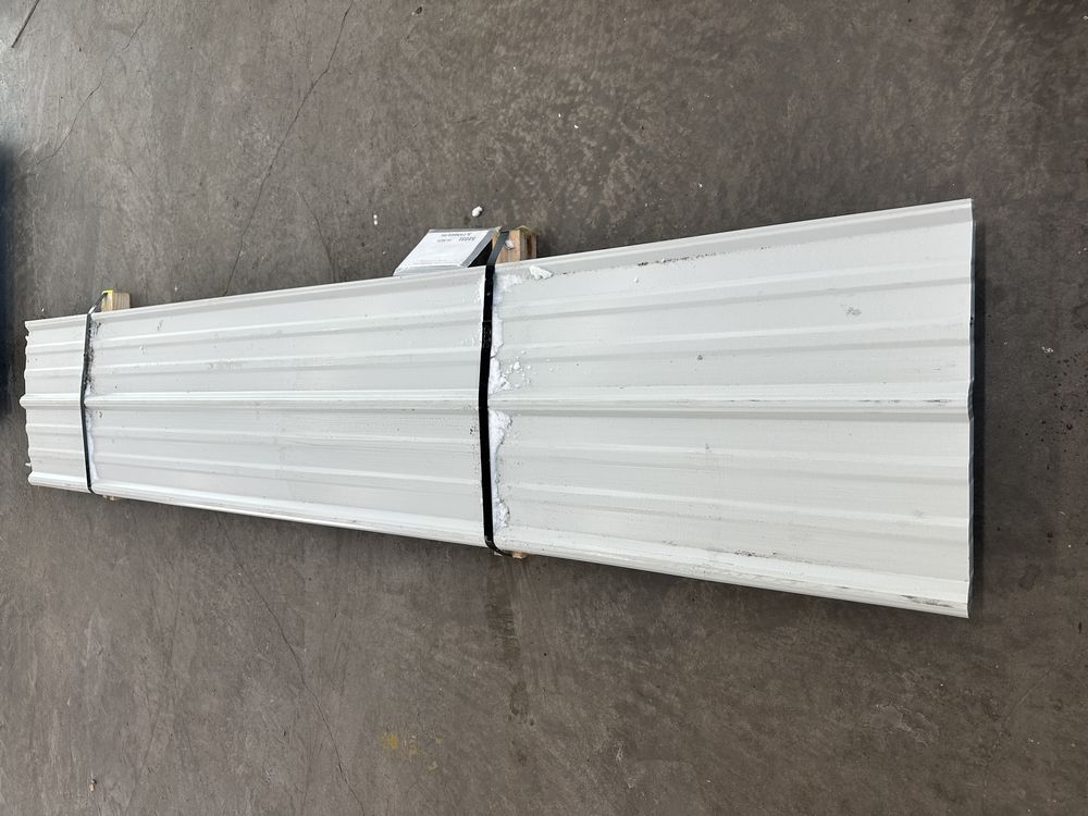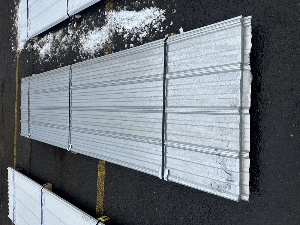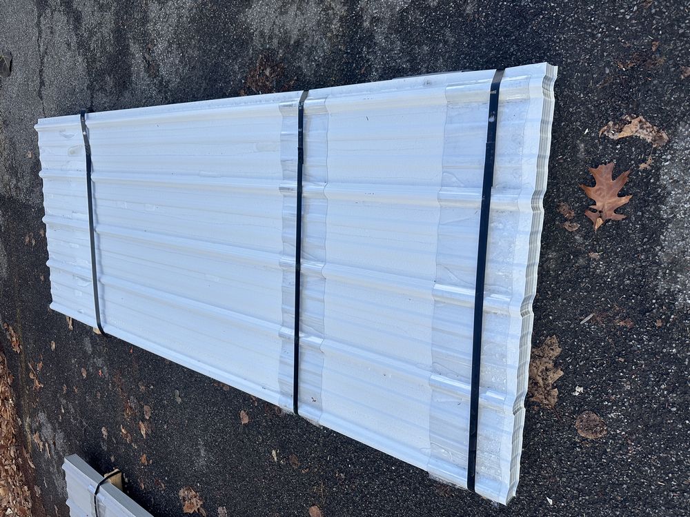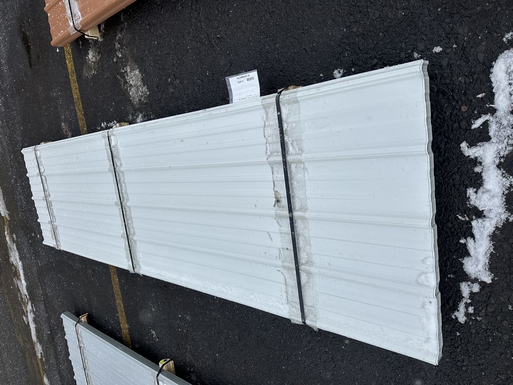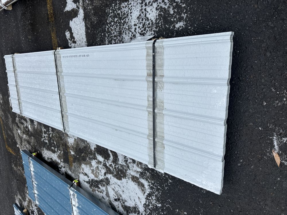 White Corrugated Metal Panel 3'x8'. 26 Gauge, 43 Pieces, Grade: B, Metal can be labeled as "B Grade" for many reasons. Some may include possible paint imperfections such as; off colors, light or heavy coating, dirt in paint, paint splash or blisters. They may contain steel imperfections such as; creases, wrinkles, wavy edges, dents, or general handling damage. When bidding on Grade B metal panels please don't assume that any two lots are the same. If you want to buy more than one (1) lot and need the same color please call us at 607-865-6951 to have us inspect the lots before you purchase. Weight: 963. Sold by: Linear Foot. Sold as: Price X Quantity. Inventory #: 2850-WHT 3xRL