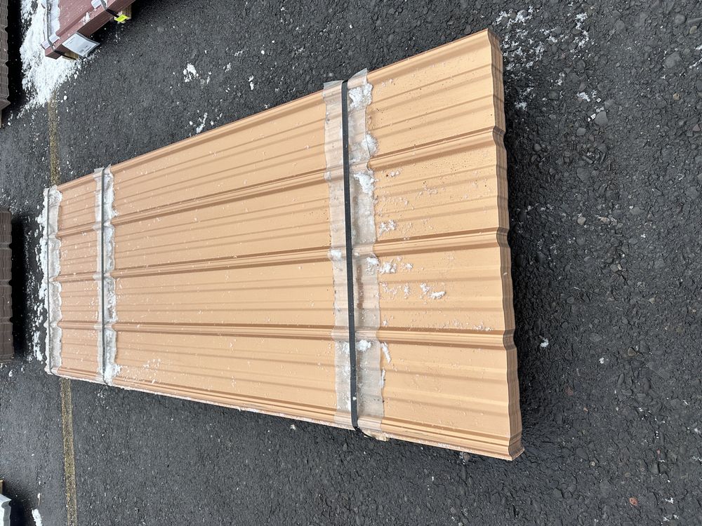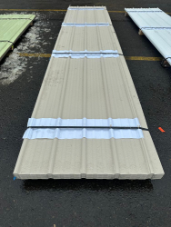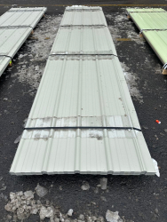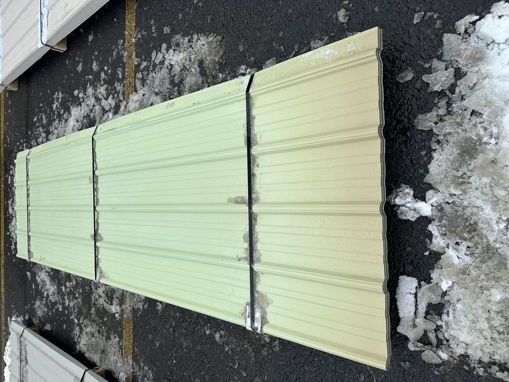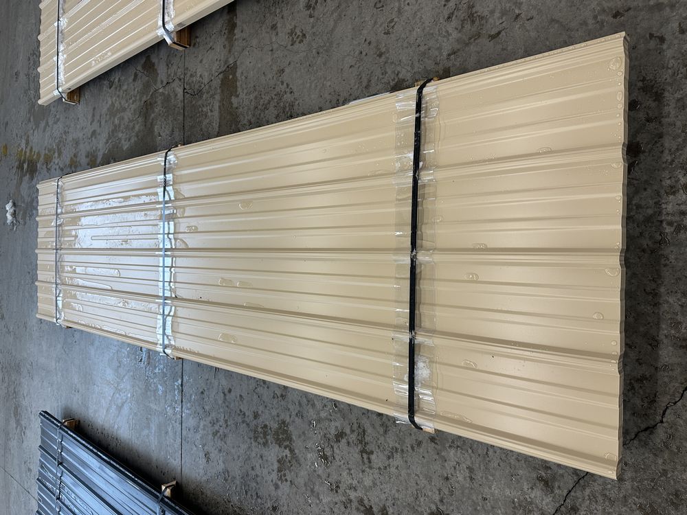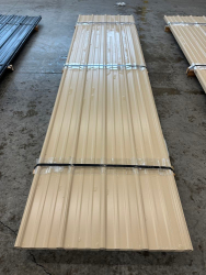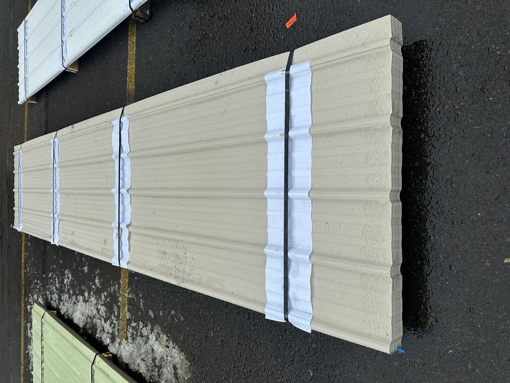 Textured Beige Corrugated Metal Panel 3'x16'. 24 Gauge, 39 Pieces, Grade: B. Metal can be labeled as "B Grade" for many reasons. Some may include possible paint imperfections such as; off colors, light or heavy coating, dirt in paint, paint splash or blisters. They may contain steel imperfections such as; creases, wrinkles, wavy edges, dents, or general handling damage. When bidding on Grade B metal panels please don't assume that any two lots are the same. If you want to buy more than one (1) lot and need the same color please call us at 607-865-6951 to have us inspect the lots before you purchase. Weight: 1966. Sold by: Linear Foot. Sold as: Price X Quantity. Inventory #: 2850-BG 3xRL