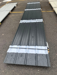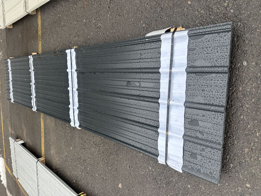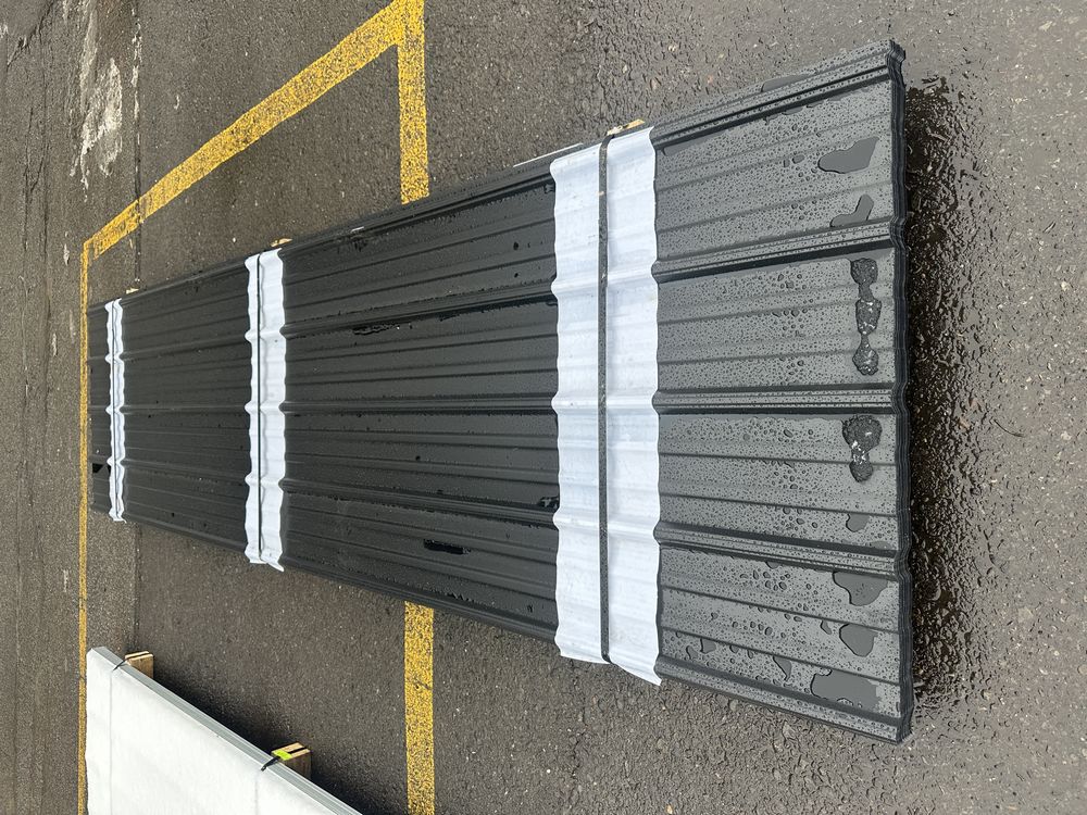 Charcoal Corrugated Metal Panel 3'x8'. 24 Gauge, 48 Pieces,Grade: B, Metal can be labeled as "B Grade" for many reasons. Some may include possible paint imperfections such as; off colors, light or heavy coating, dirt in paint, paint splash or blisters. They may contain steel imperfections such as; creases, wrinkles, wavy edges, dents, or general handling damage. When bidding on Grade B metal panels please don't assume that any two lots are the same. If you want to buy more than one (1) lot and need the same color please call us at 607-865-6951 to have us inspect the lots before you purchase. Weight: 1210. Sold by: Linear Foot. Sold as: Price X Quantity. Inventory #: 2850-GRY 3xRL