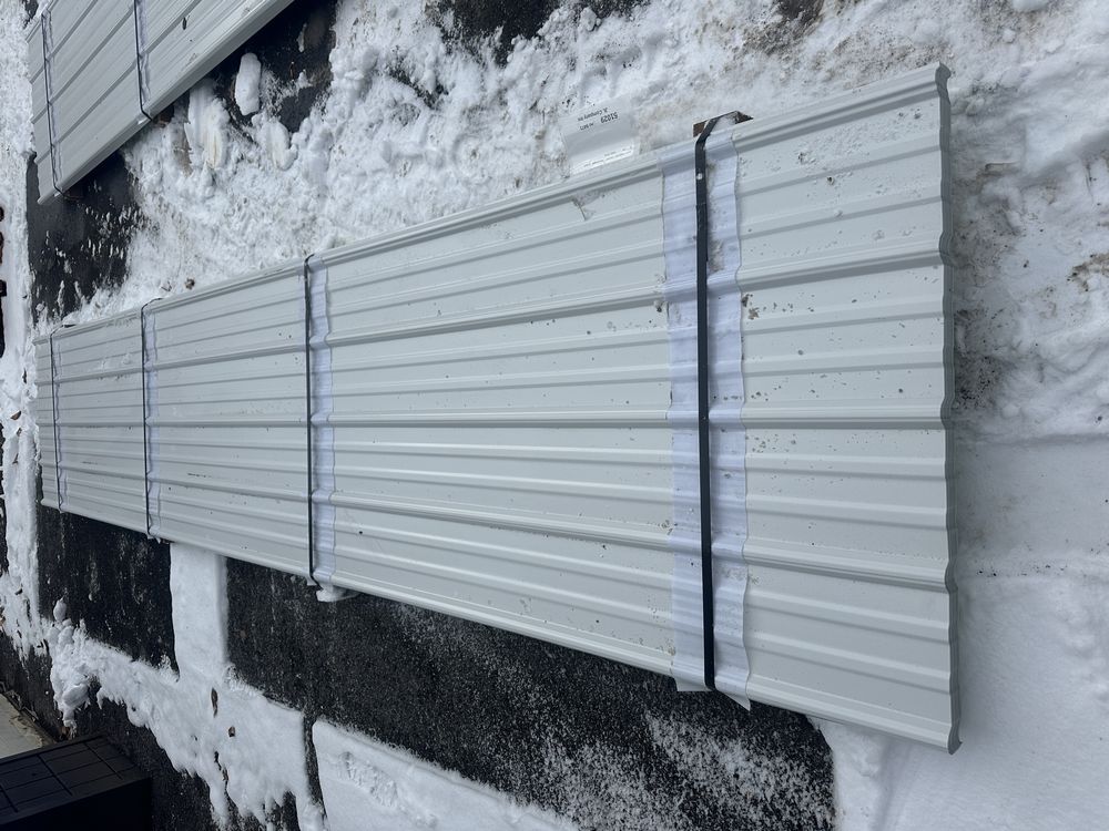 White Corrugated Metal Panel 3'x16'. 26 Gauge, 39 Pieces, Grade: B. Metal can be labeled as "B Grade" for many reasons. Some may include possible paint imperfections such as; off colors, light or heavy coating, dirt in paint, paint splash or blisters. They may contain steel imperfections such as; creases, wrinkles, wavy edges, dents, or general handling damage. When bidding on Grade B metal panels please don't assume that any two lots are the same. If you want to buy more than one (1) lot and need the same color please call us at 607-865-6951 to have us inspect the lots before you purchase. Weight: 1747. Sold by: Linear Foot. Sold as: Price X Quantity. Inventory #: 2850-WHT 3xRL