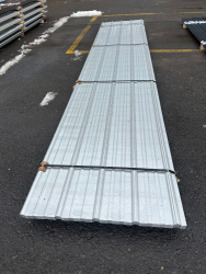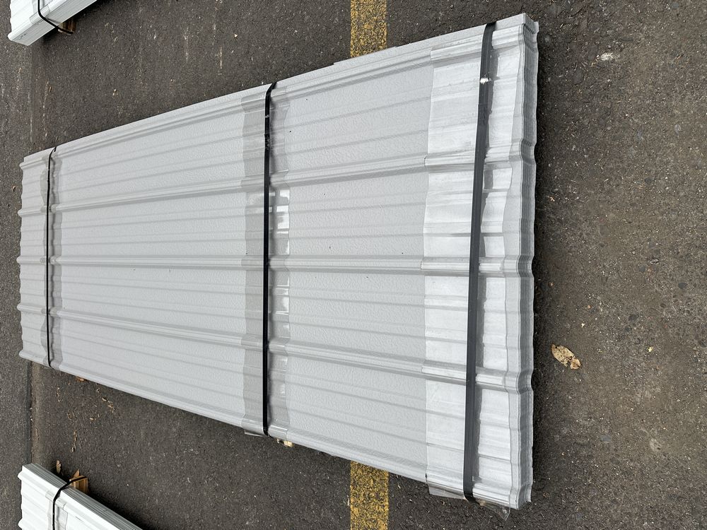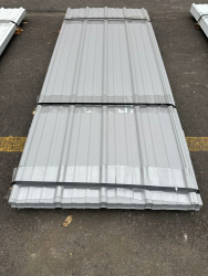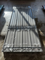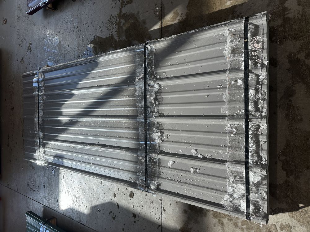 Ash Gray Corrugated Metal Panel 3'x8'. 26 Gauge, 31 Pieces, Grade: B. Metal can be labeled as "B Grade" for many reasons. Some may include possible paint imperfections such as; off colors, light or heavy coating, dirt in paint, paint splash or blisters. They may contain steel imperfections such as; creases, wrinkles, wavy edges, dents, or general handling damage. When bidding on Grade B metal panels please don't assume that any two lots are the same. If you want to buy more than one (1) lot and need the same color please call us at 607-865-6951 to have us inspect the lots before you purchase. Weight: 694. Sold by: Linear Foot. Sold as: Price X Quantity. Inventory #: 2850-GRY 3xRL