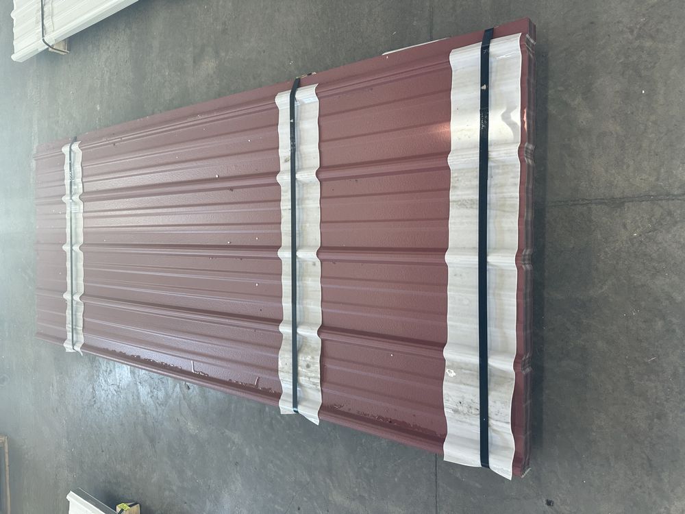Colonial Red Corrugated Metal Panel 3'x8'. 24 Gauge, 42 Pieces, Grade: B. Metal can be labeled as "B Grade" for many reasons. Some may include possible paint imperfections such as; off colors, light or heavy coating, dirt in paint, paint splash or blisters. They may contain steel imperfections such as; creases, wrinkles, wavy edges, dents, or general handling damage. When bidding on Grade B metal panels please don't assume that any two lots are the same. If you want to buy more than one (1) lot and need the same color please call us at 607-865-6951 to have us inspect the lots before you purchase. Weight: 1058. Sold by: Linear Foot. Sold as: Price X Quantity. Inventory #: 2850-RD 3xRL