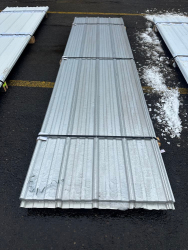White Corrugated Metal Panel 3'x12'. 24 Gauge, 40 Pieces, Grade: B Metal can be labeled as "B Grade" for many reasons. Some may include possible paint imperfections such as; off colors, light or heavy coating, dirt in paint, paint splash or blisters. They may contain steel imperfections such as; creases, wrinkles, wavy edges, dents, or general handling damage. When bidding on Grade B metal panels please don't assume that any two lots are the same. If you want to buy more than one (1) lot and need the same color please call us at 607-865-6951 to have us inspect the lots before you purchase. Weight: 1512. Sold by: Linear Foot. Sold as: Price X Quantity. Inventory #: 2850-WHT 3xRL