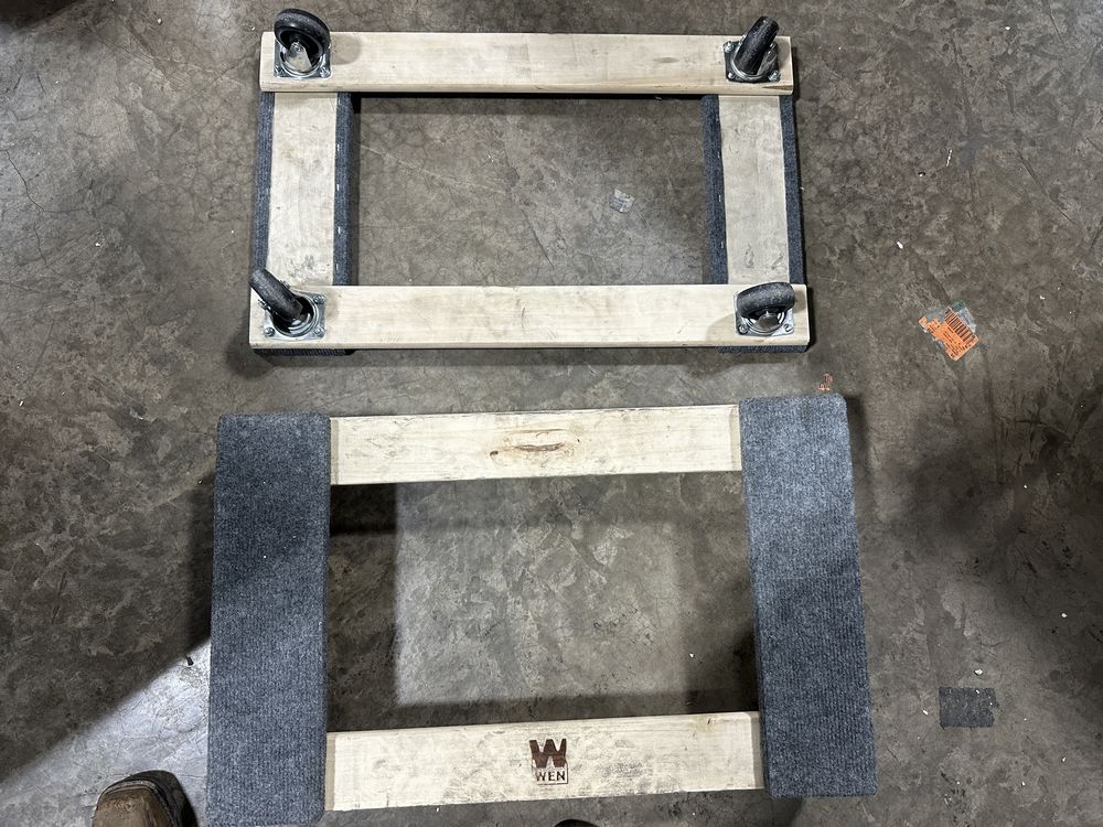 WEN 721830 1320-Pound Capacity 18-by-30-Inch Hardwood Mover’s Dolly 2-Pack (2x$). Includes two furniture dollies per box measuring in at 18 x 30 x 5 inches. Each pair of dollies handles a 2000-pound static load and a 1320-pound dynamic load. Four ball-bearing swivel casters make for easy rolling in any direction. Unassembled. Weight: . Sold by: Case. Sold as: Price X Quantity. Inventory #: