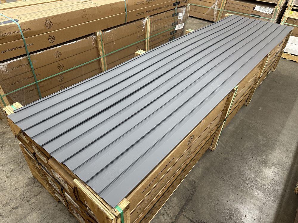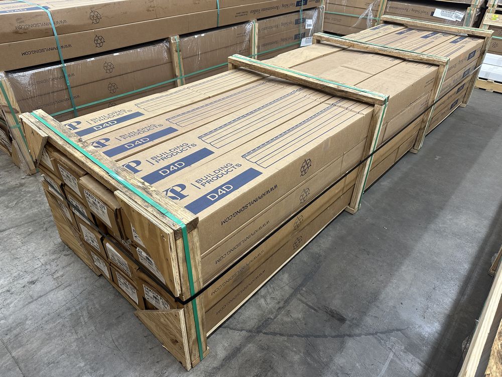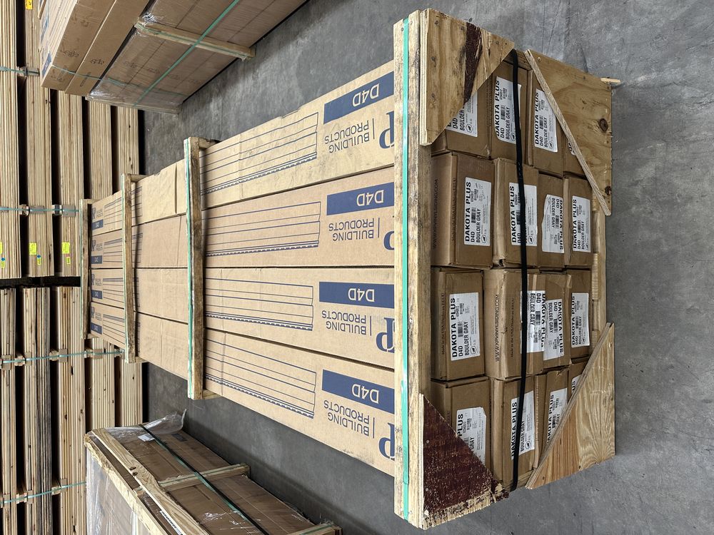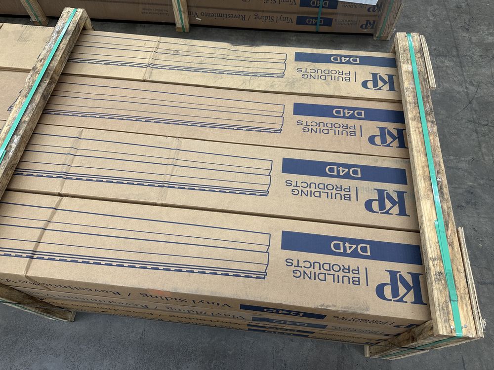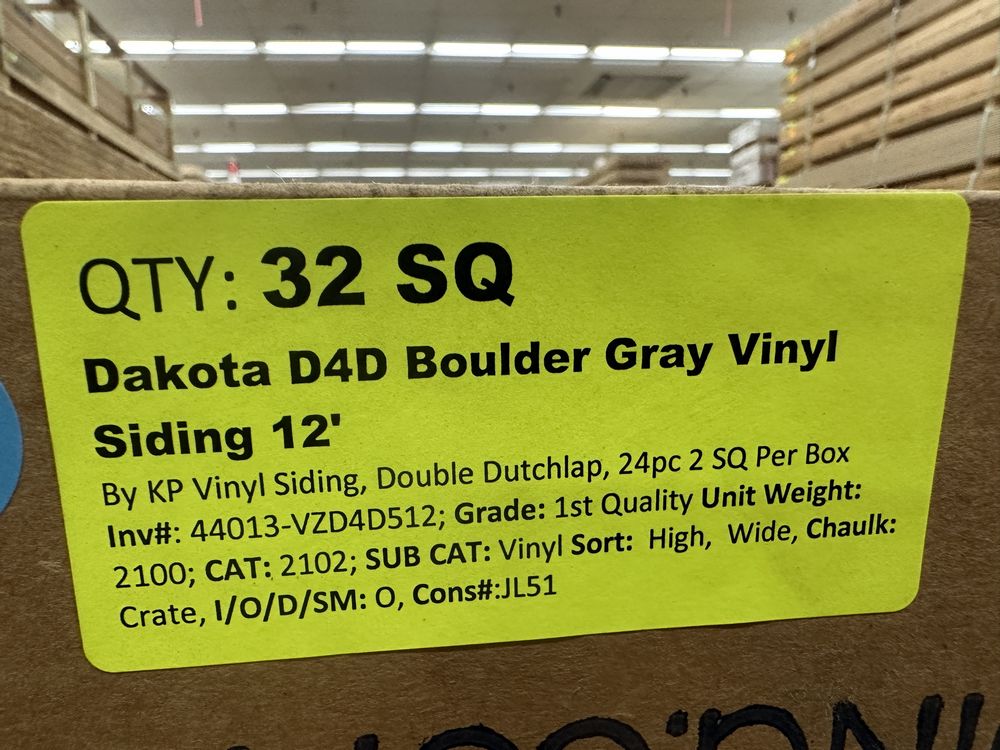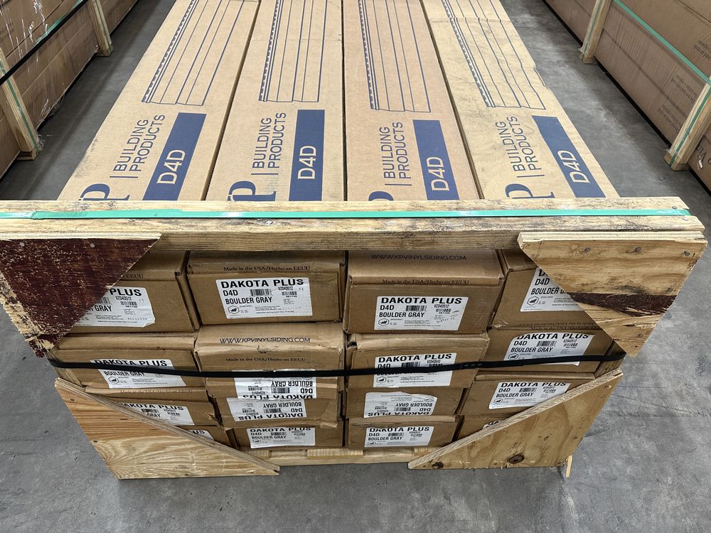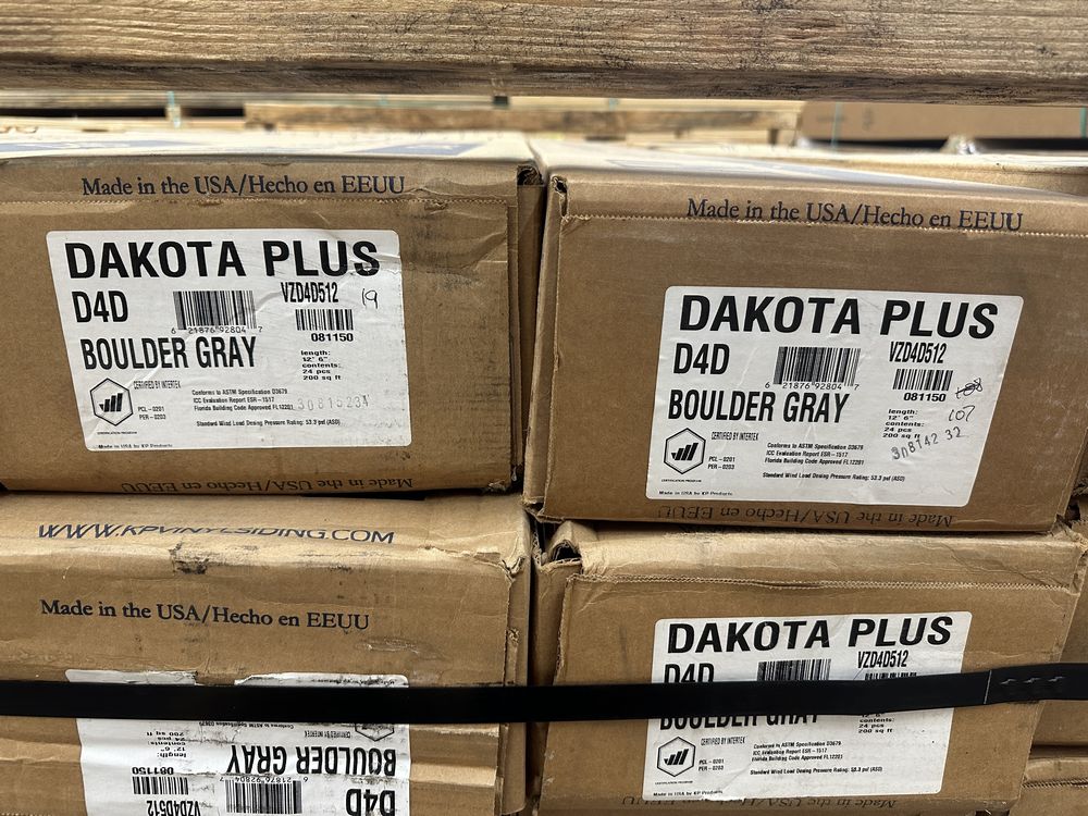 Dakota D4D Boulder Gray Vinyl Siding 12'. By KP Vinyl Siding, Double Dutchlap, 24 Pieces, 2 Square Foot Per Box, Grade: 1st Quality. Weight: 2100. Sold by: Square. Sold as: Price X Quantity. Inventory #: 44013-VZD4D512