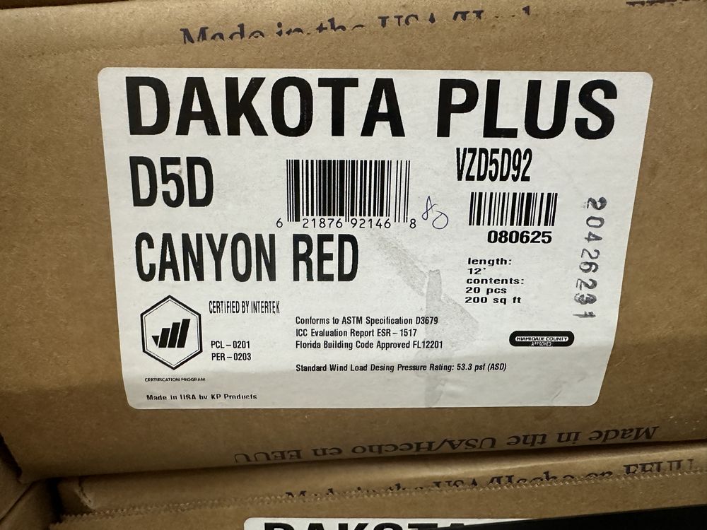 Canyon Red D5D Vinyl Siding 12'. By KP Products, 2 Square per Box, 20 Pieces per Box, 14 Boxes total, Grade: 1st Quality. Weight: 1680. Sold by: Square. Sold as: Price X Quantity. Inventory #: 44013-VZD5D93
