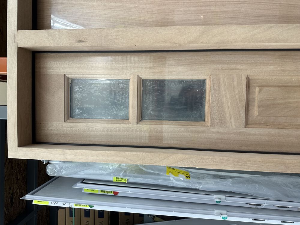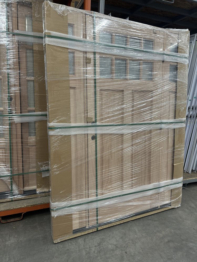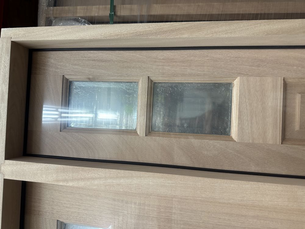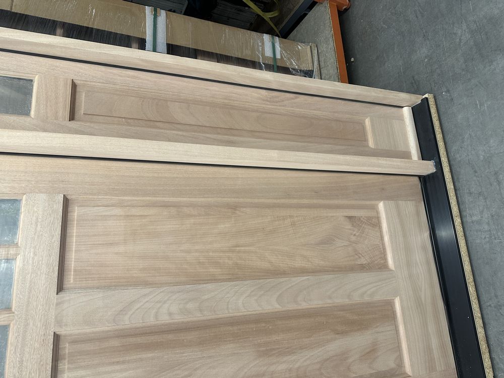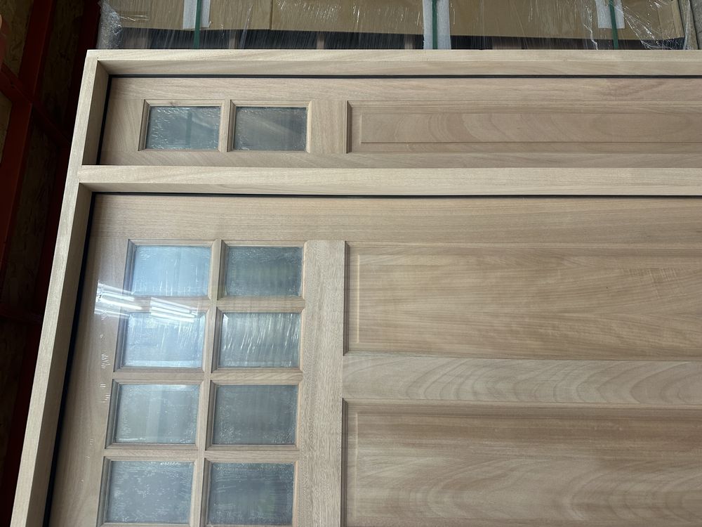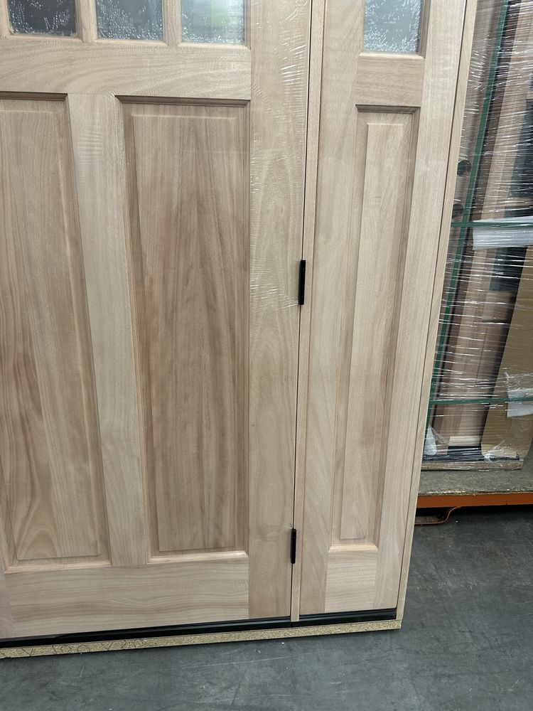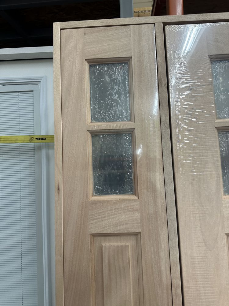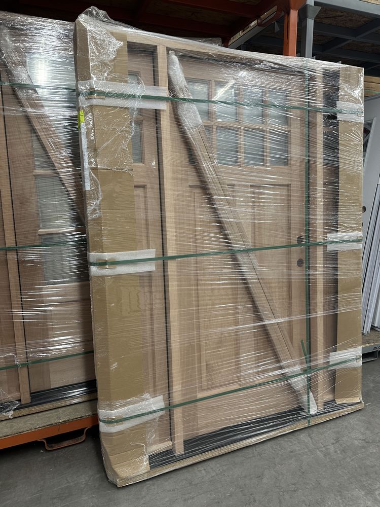 Exterior 8-Lite Square Craftsman Style Mahogany Door 1-3-1, LH. Pre-Hung: 36"x80" Door, 2 12"x80" Sidelites, Sill 5 9/16", Rough Opening: 64 3/4"W x 83 1/4"H, Grade: 1st. Weight: x. Sold by: Door. Sold as: Price X Quantity. Inventory #: 5213-PT-M15-T LH