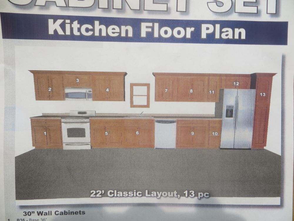 Frontier Shaker Kitchen Cabinet Set 22'. Classic Layout, 30" Walls, By GHI. Additional pieces may be available for order to the high bidder. 3/4” Solid Wood Face Frame -Solid Wood Shaker Style Doors Frames and Drawer Fronts with Knots -1/2” Plywood Box Construction with Wood Veneer Interiors and Exteriors -3/4” plywood Shelves -Full overlay Doors and Drawer Fronts -3/4" Solid Wood Dovetail Drawer Box -Soft Close Full Extension Drawer Gliders -6-Way Adjustable Concealed Hinges -Soft Close. Cabinet Assembly Option IS NOT Available on this kitchen cabinet set. This set is UNASSEMBLED. Enclosed in each cabinet set will be a Build Sheet which lists the individual cabinets in each set. As the cabinets are palletized each cabinet will be checked off and signed by our staff member to ensure that the set is complete at the time of pick-up. Please keep this Build Sheet on hand because it will be required if there is an issue with your cabinet set. Cabinet issues will not be addressed without this build sheet. Weight: X. Sold by: Set. Sold as: Price X Quantity. Inventory #: FTS-G 22 W30 CLS