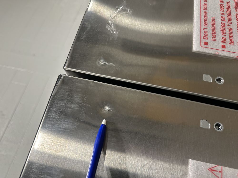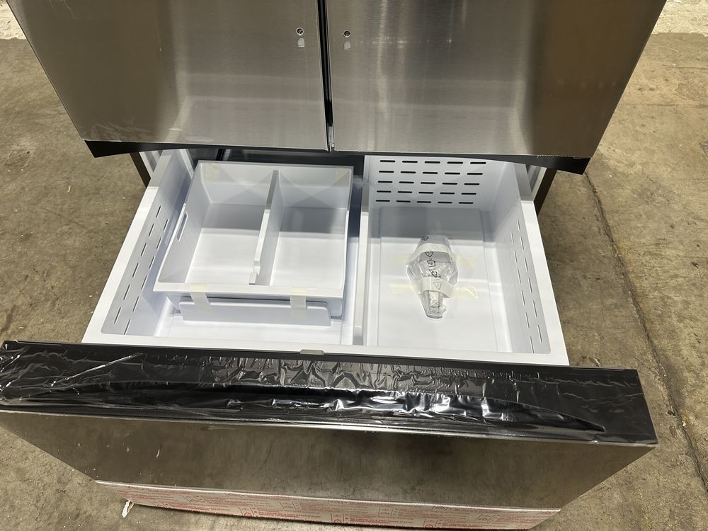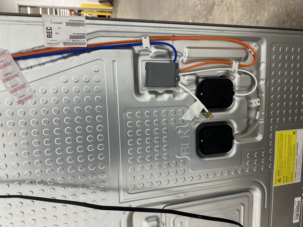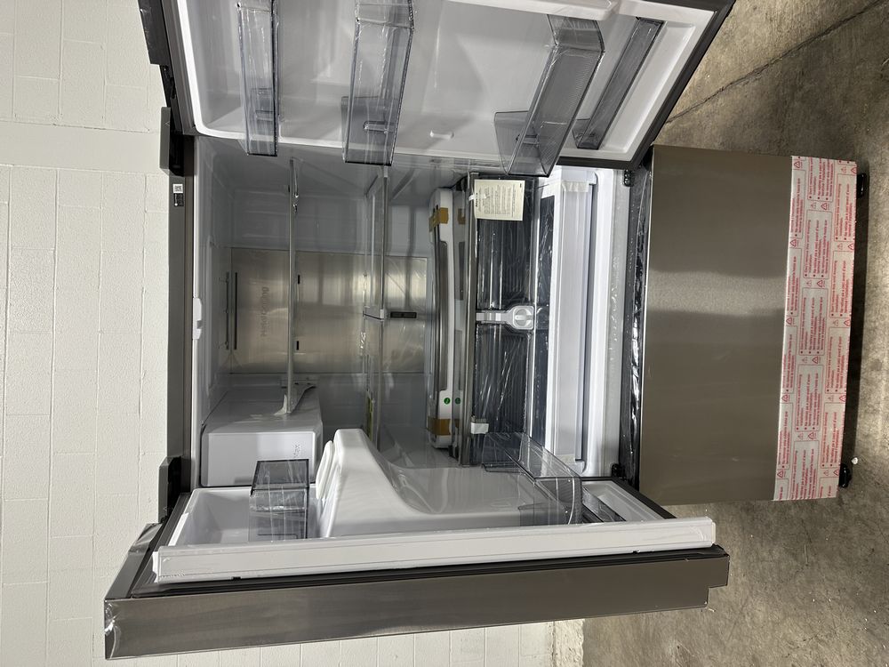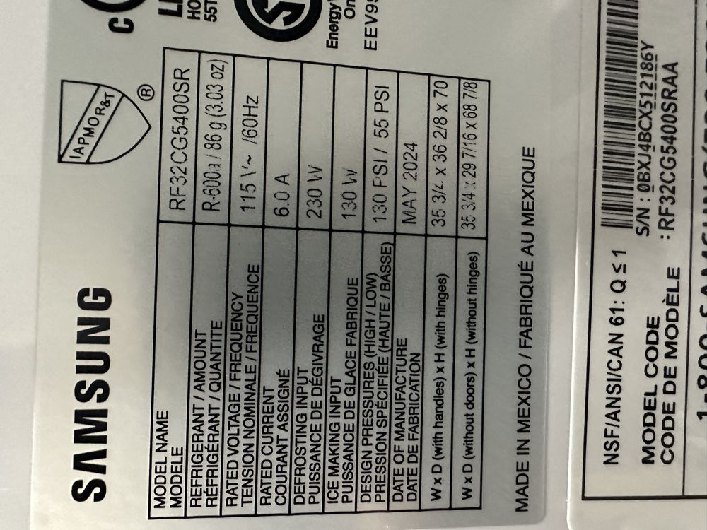 Samsung 31 cu. ft. Mega Capacity 3-Door French Door Refrigerator-RF32CG5400SR. Dents to top of doors, scratch lower right side. 31 cu. ft. Mega Capacity Refrigerator stores more groceries with extra room. Get four types of ice: cubed, Ice Bites™ , curved, or crushed. The external ice dispenser offers two additional ice options, curved and crushed. Modern design that features recessed drawer handles. Weight: . Sold by: . Sold as: Price X Quantity. Inventory #: