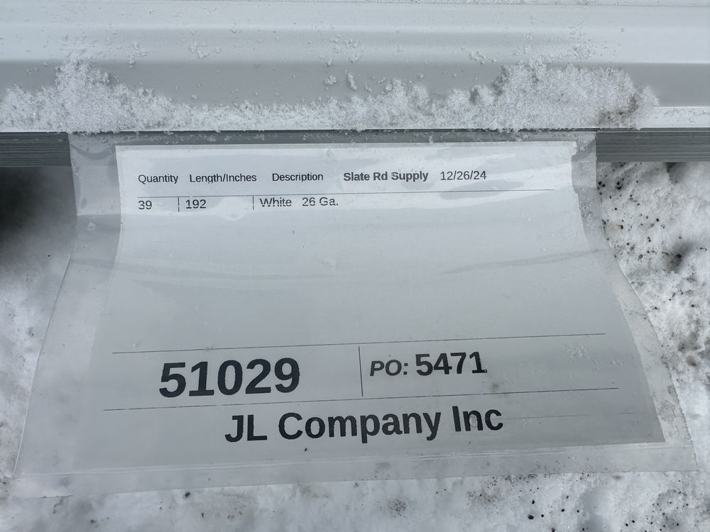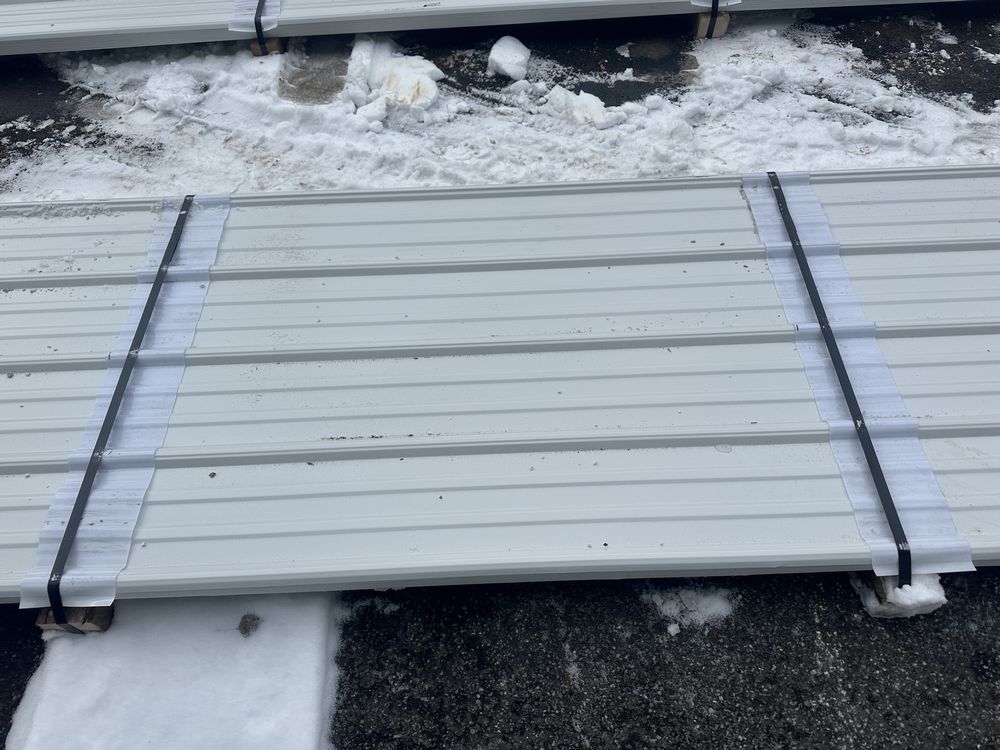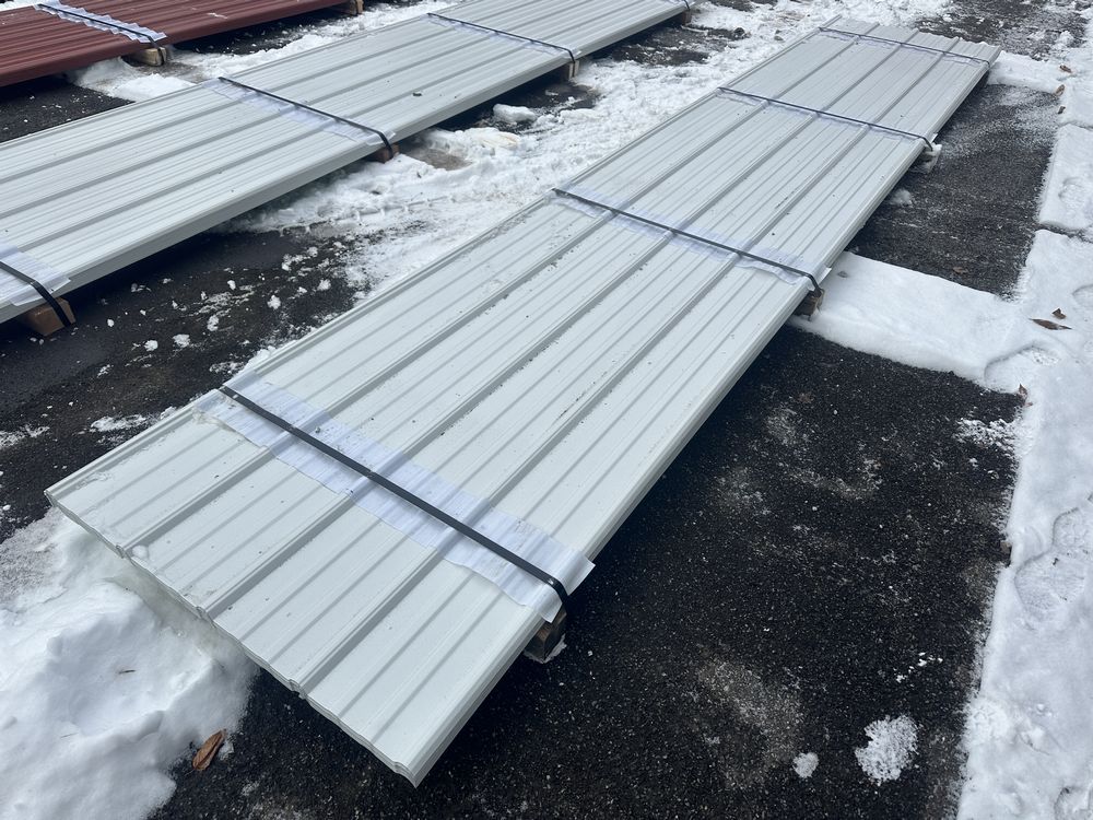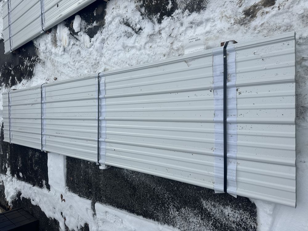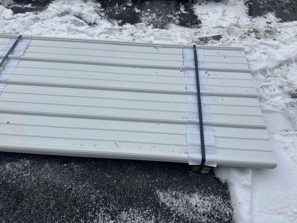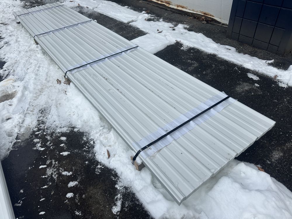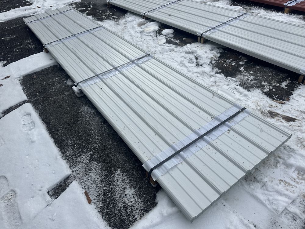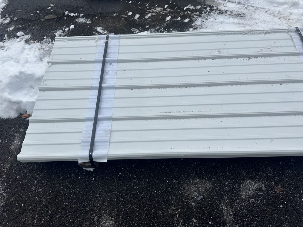 White Corrugated Metal Panel 3'x16'. 26 Gauge, 39 Pieces, Grade: B. Metal can be labeled as "B Grade" for many reasons. Some may include possible paint imperfections such as; off colors, light or heavy coating, dirt in paint, paint splash or blisters. They may contain steel imperfections such as; creases, wrinkles, wavy edges, dents, or general handling damage. When bidding on Grade B metal panels please don't assume that any two lots are the same. If you want to buy more than one (1) lot and need the same color please call us at 607-865-6951 to have us inspect the lots before you purchase. Weight: 1747. Sold by: Linear Foot. Sold as: Price X Quantity. Inventory #: 2850-WHT 3xRL