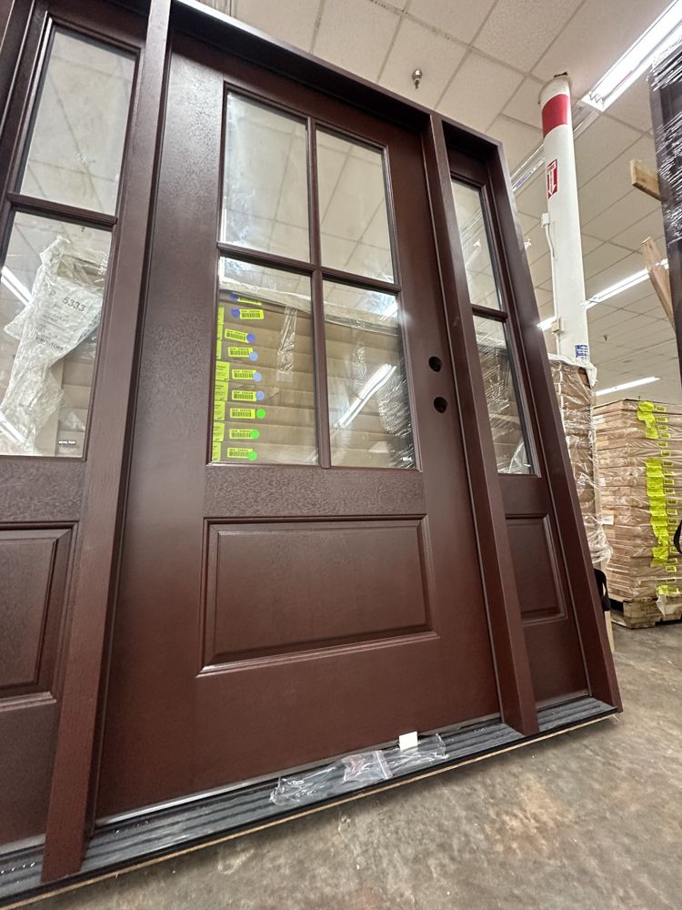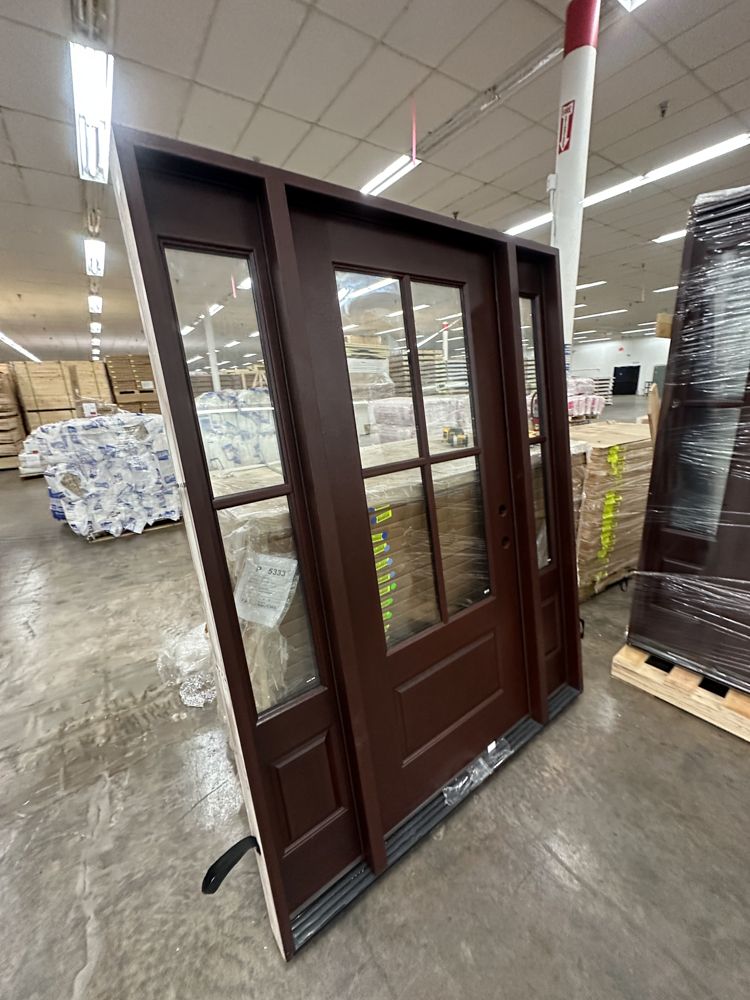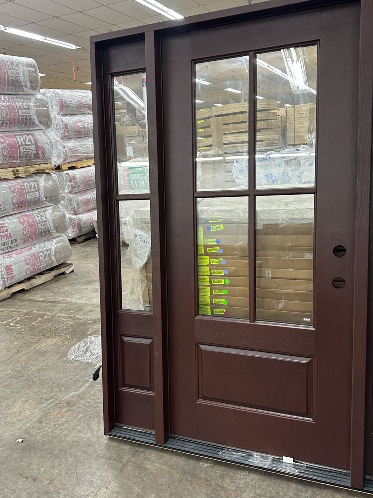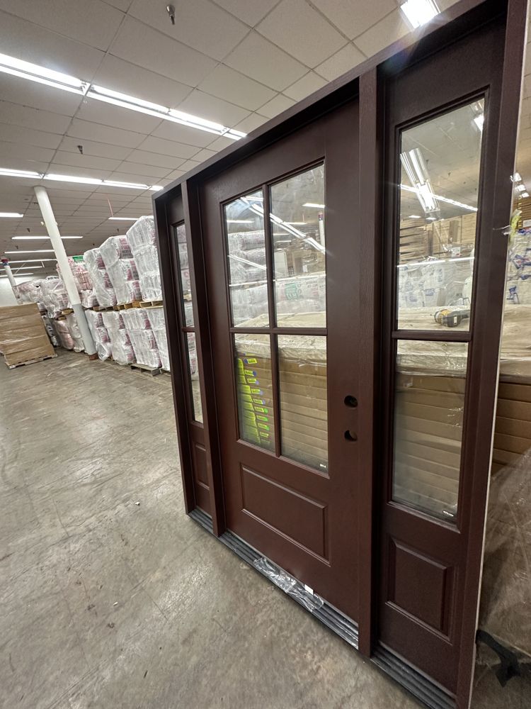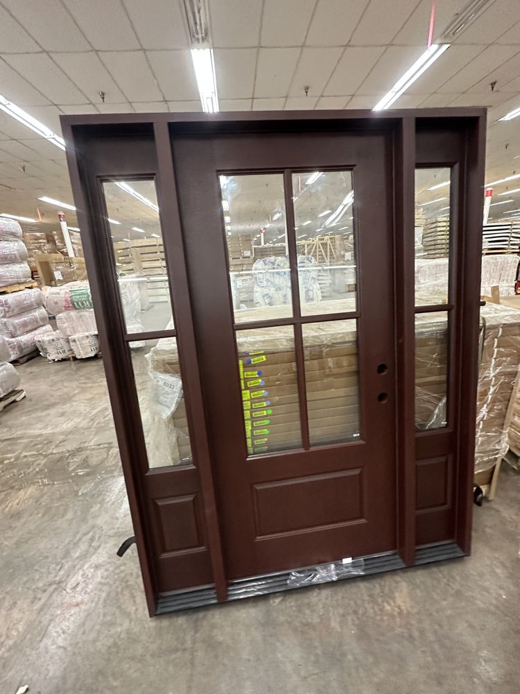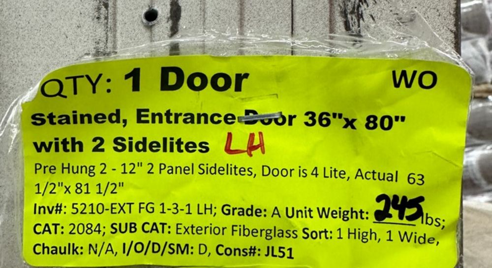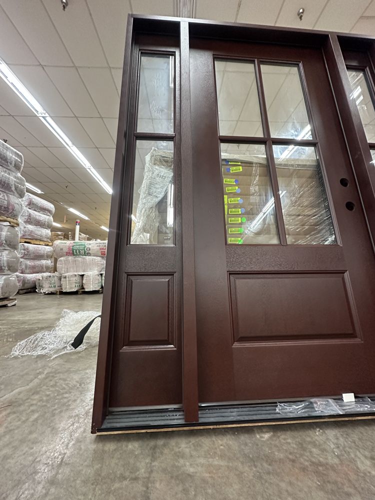 Stained, Entrance Door 36"x80" With 2 Sidelites, LH. Pre-Hung 2-12" 2-Panel Sidelites, Door is 4 Lite, Actual Dimensions 63 1/2"x81 1/2", Grade: A. Weight: 245. Sold by: Door. Sold as: Price X Quantity. Inventory #: 5210-EXT FG 1-3-1 LH