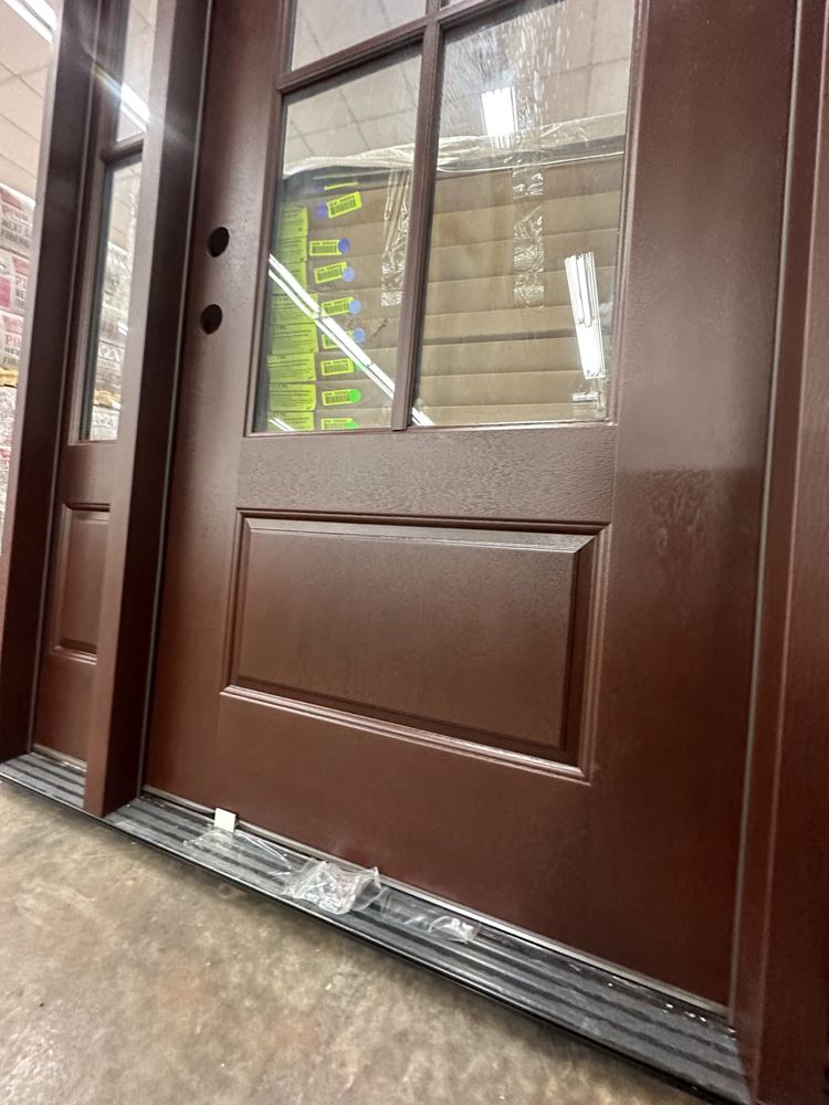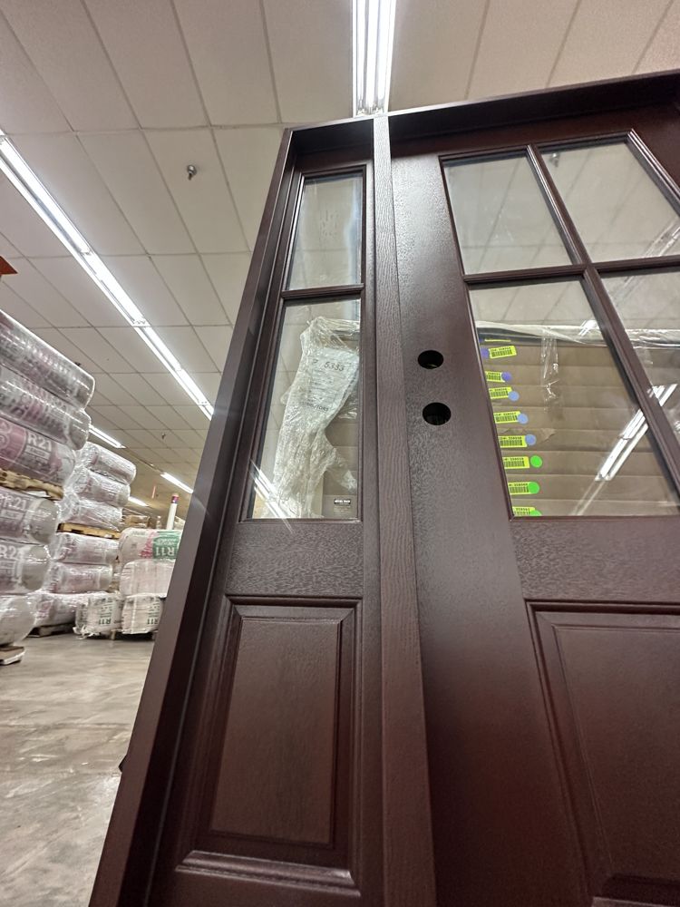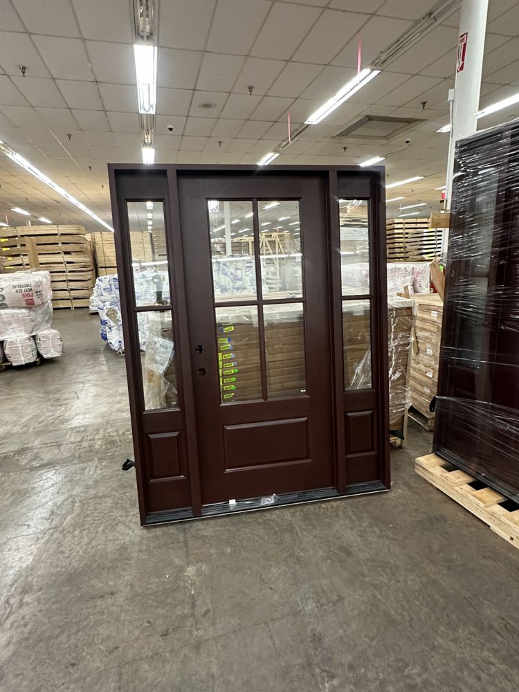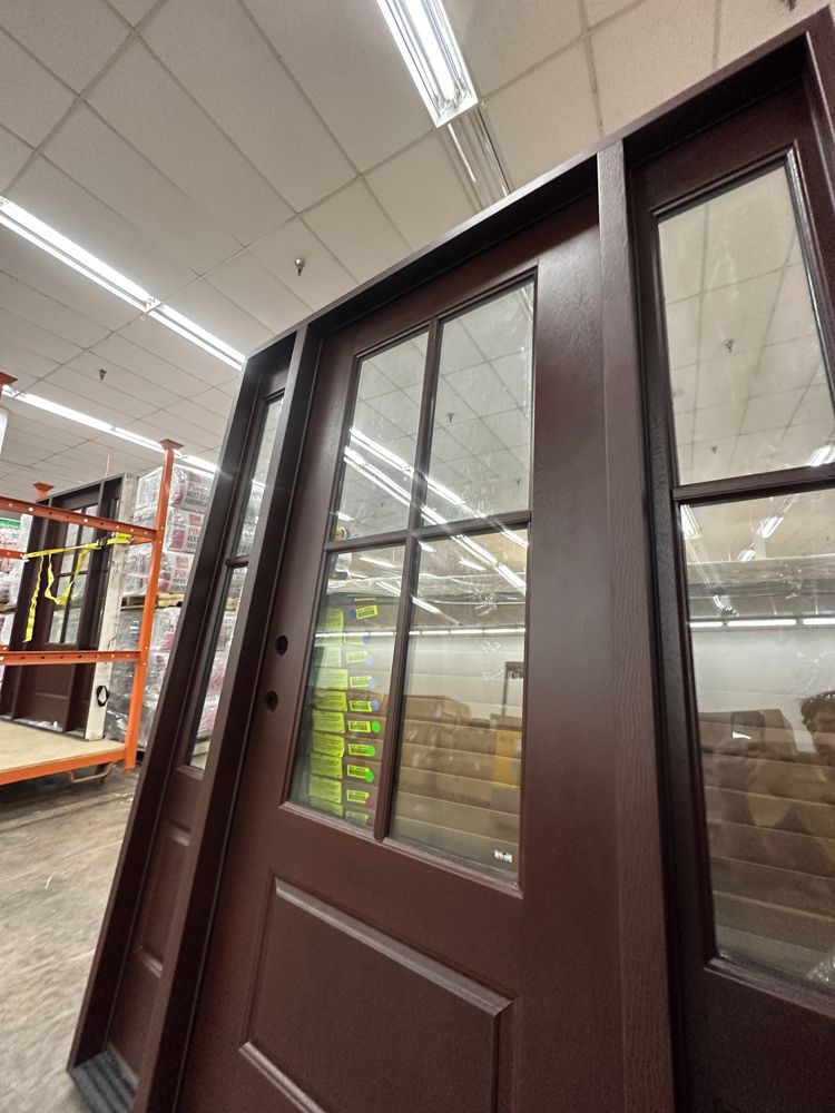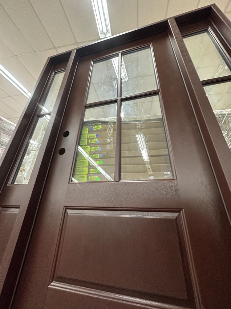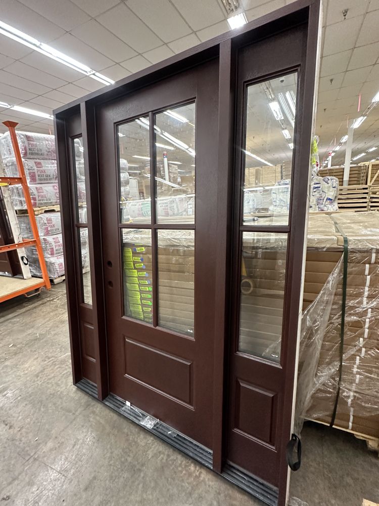 Stained, Entrance Door 36"x80" With 2 Sidelites, RH. Pre-Hung 2-12" 2-Panel Sidelites, Door is 4 Lite, Actual Dimensions 63 1/2"x81 1/2", Grade: A. Weight: 245. Sold by: Door. Sold as: Price X Quantity. Inventory #: 5210-EXT FG 1-3-1 RH