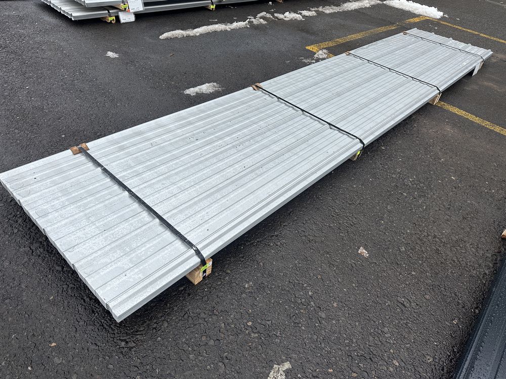 Galvalume Metal Panel 3'x16'. 29 Gauge, 50 Pieces, Grade: B. Metal can be labeled as "B Grade" for many reasons. Some may include possible paint imperfections such as; off colors, light or heavy coating, dirt in paint, paint splash or blisters. They may contain steel imperfections such as; creases, wrinkles, wavy edges, dents, or general handling damage. When bidding on Grade B metal panels please don't assume that any two lots are the same. If you want to buy more than one (1) lot and need the same color please call us at 607-865-6951 to have us inspect the lots before you purchase. Weight: 1720. Sold by: Linear Foot. Sold as: Price X Quantity. Inventory #: 2850-GLV 3xRL