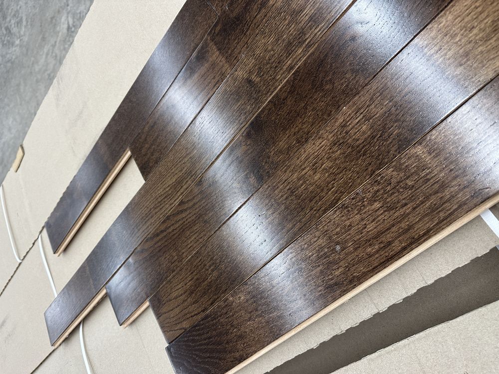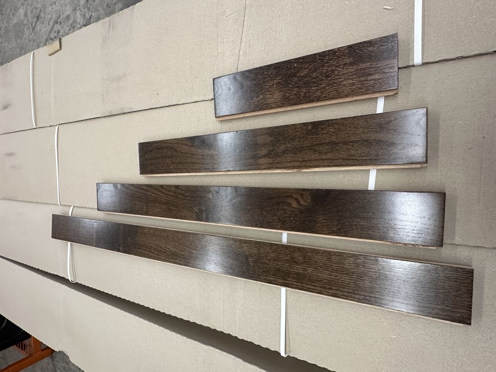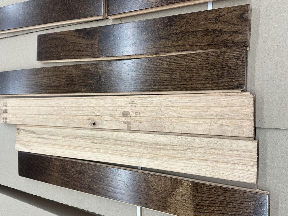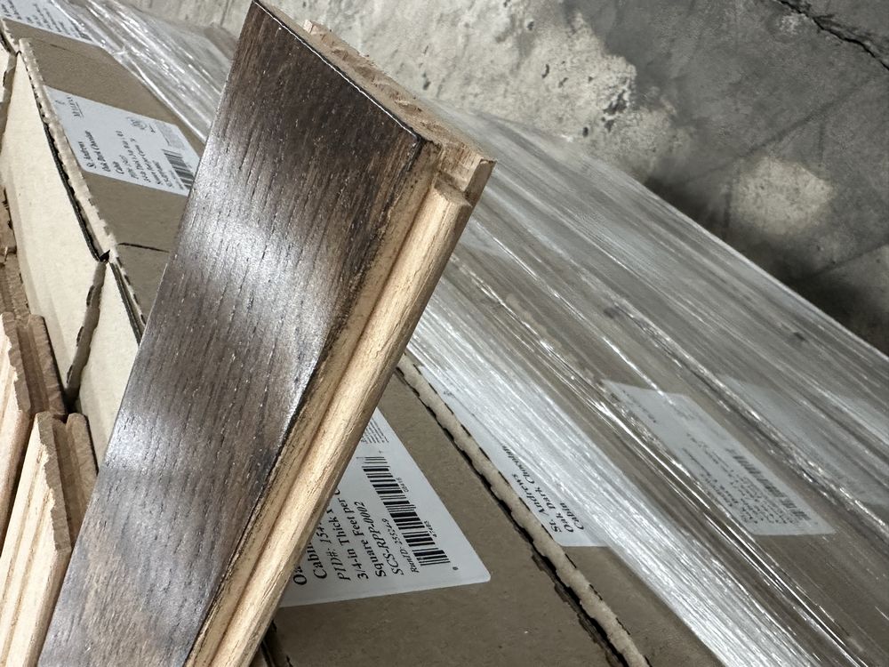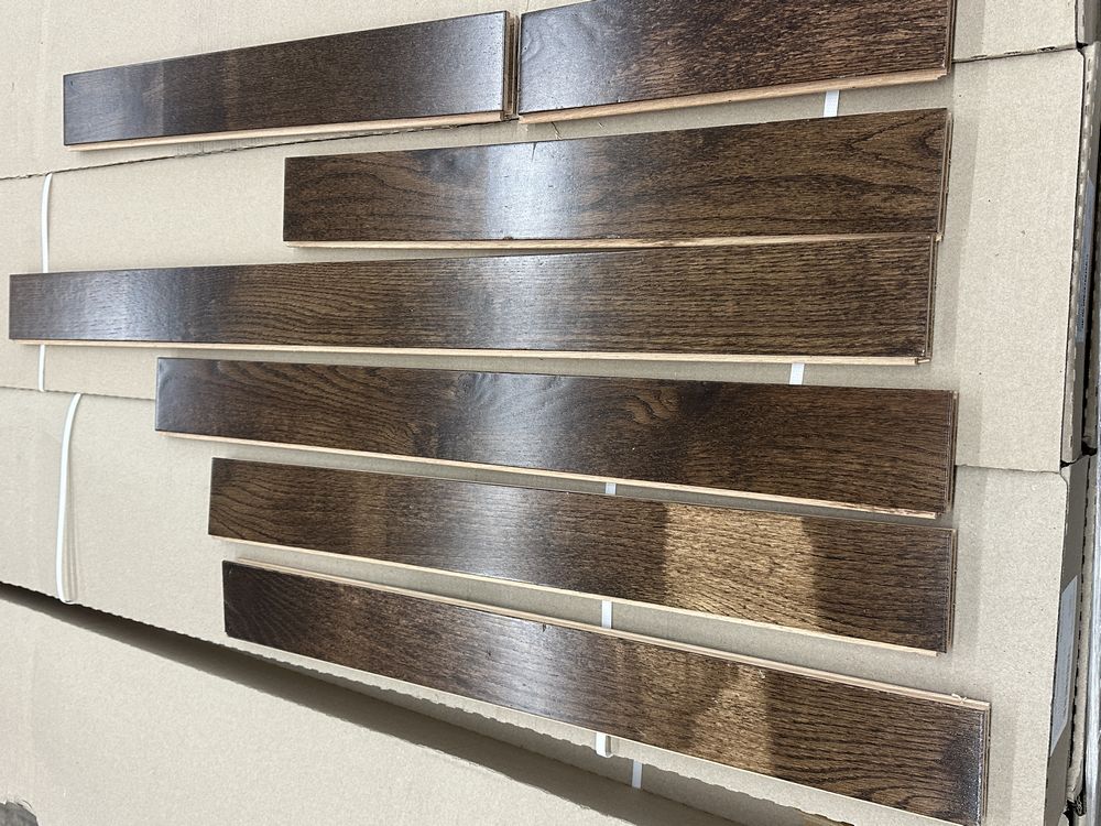 St. Andrews Oak Dark Chocolate Hardwood Flooring 3/4"x3"xRL. By Mullican, Prefinished, 24 SQ FT Per Carton, 28 Cartons, Janka Rating: 1290, Smooth Finish, Grade: Cabin/Utility/Tavern Grade: This flooring product will have varying wood characteristics and colors to include streaks, deeper knots and burls, small splits, wormholes, and even marks during the milling process such as machine burns. It may also have a large variance in color and grain patterns. The boards are typically 10” to 30” with an average board length of 16”. It is usually packaged in mini bundles of 18-20 sf per bundle. It is ok for 5” wide to be heavier in shorter pieces. Cabin grade is a stable, installable product but please account up to 10%-20% waste. Weight: 2220. Sold by: Square Foot. Sold as: Price X Quantity. Inventory #: 2132-15415