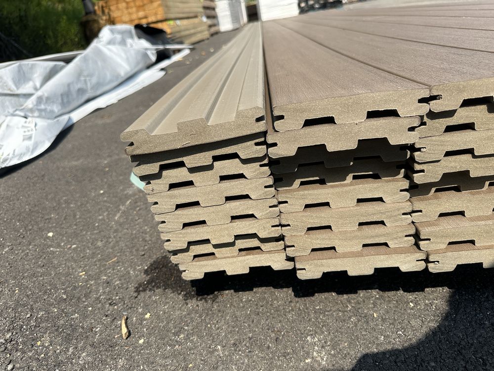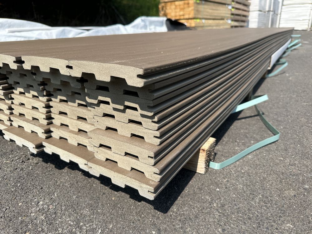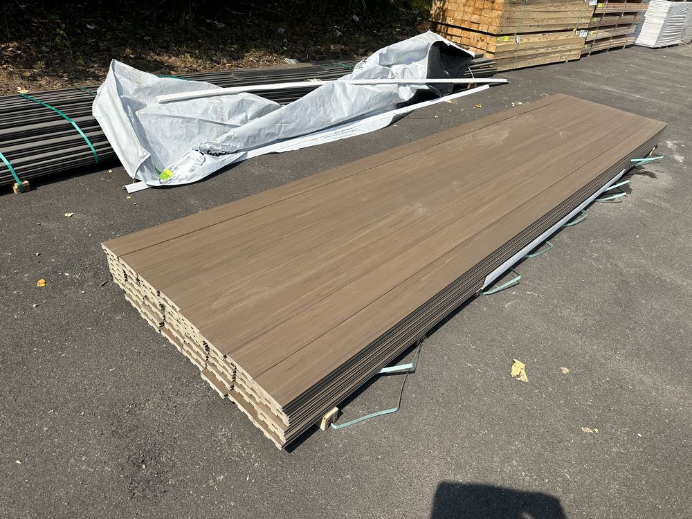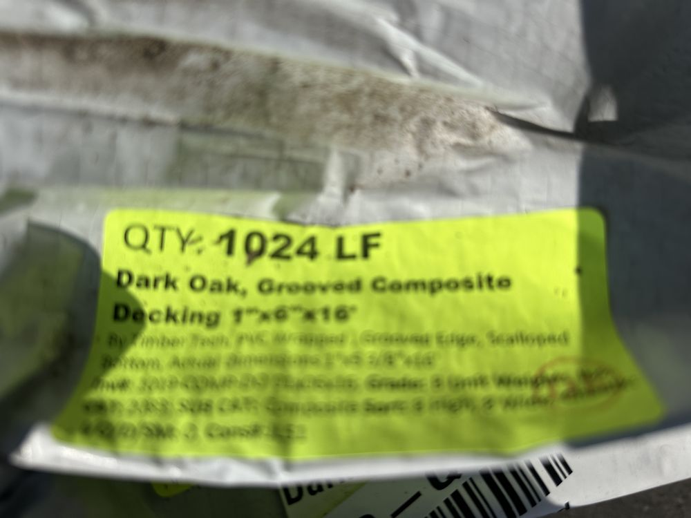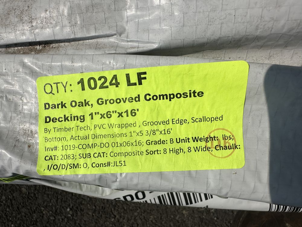 Dark Oak Grooved Composite Decking 1"x6"x16'. By Timber Tech, PVC Wrapped, Grooved Edges, Scalloped Bottom, Actual Dimensions 1"x5 3/8"x16' 64 Total Piece,Grade: B. Weight: x. Sold by: Linear Foot. Sold as: Price X Quantity. Inventory #: 1022-COMP-DO 01x06x16