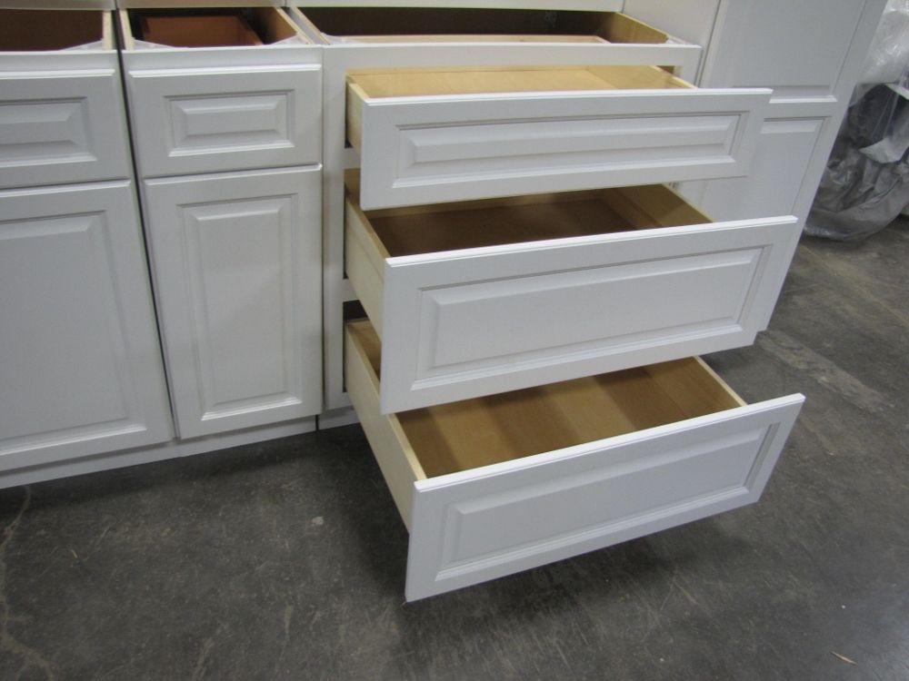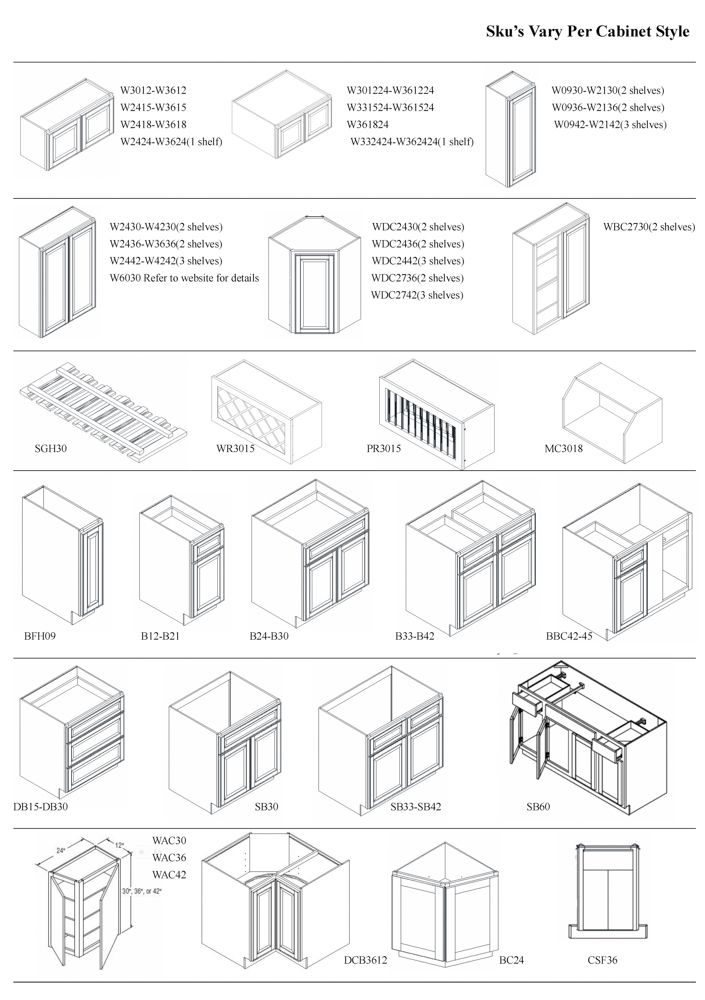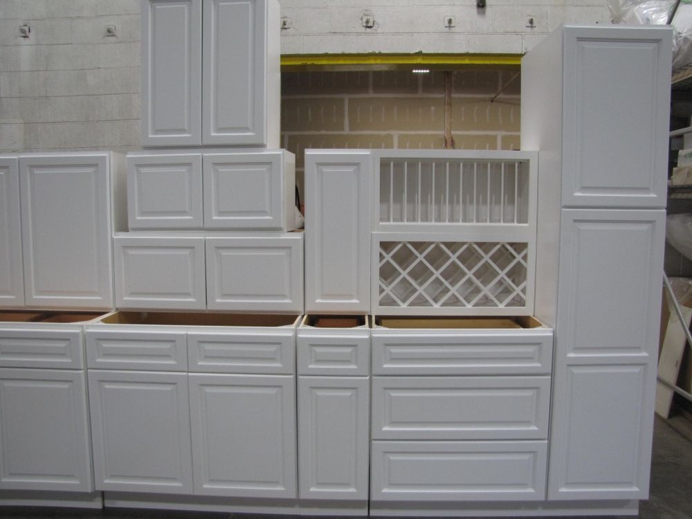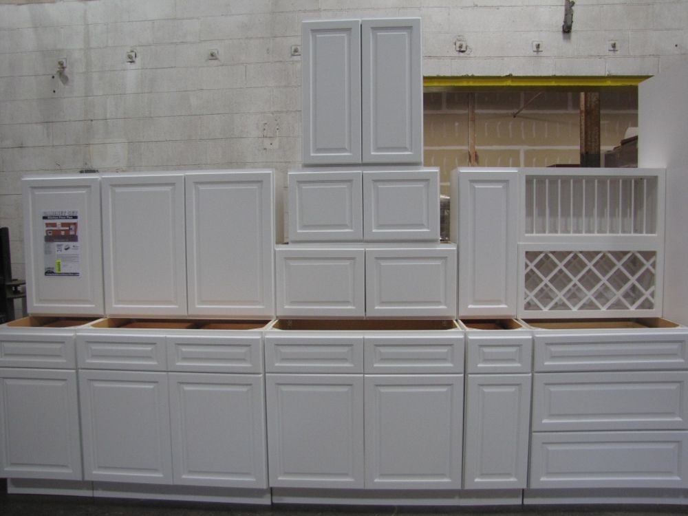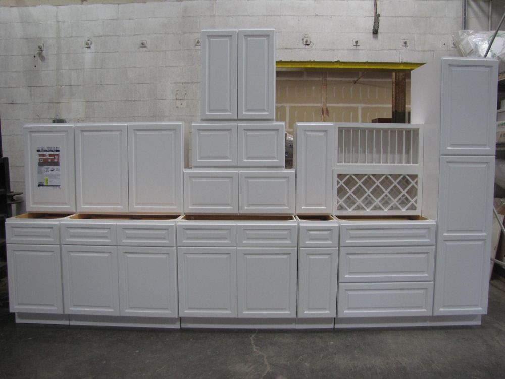 Newport White Kitchen Cabinet Set 20'. Deluxe Layout, 30" Walls, By GHI, Additional pieces may be available for order to the high bidder. Additional cabinets ship boxed, ready to assemble. -3/4” Solid Wood Face Frame -3/4" HDF 5-pcs Door & Drawer Front -Full Overlay and 1/2" raised Panel -1/2” Plywood Box Construction -3/4” Plywood Shelves -Natural Interior -6-Way Adjustable Concealed Soft Close Door Hinges -5 Piece Drawer Front -5/8” Thick Solid Wood Dovetail Drawer Box -Undermount Full Extension Soft Close Drawer Glides. Cabinet Assembly Option IS NOT Available on this kitchen cabinet set. This set is UNASSEMBLED. Enclosed in each cabinet set will be a Build Sheet which lists the individual cabinets in each set. As the cabinets are palletized each cabinet will be checked off and signed by our staff member to ensure that the set is complete at the time of pick-up. Please keep this Build Sheet on hand because it will be required if there is an issue with your cabinet set. Cabinet issues will not be addressed without this build sheet. Weight: X. Sold by: Set. Sold as: Price X Quantity. Inventory #: NPW-G 20 W30 DLX