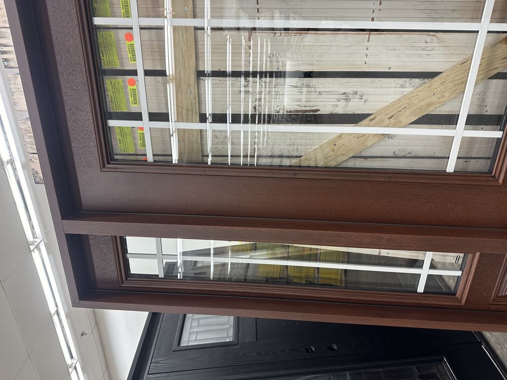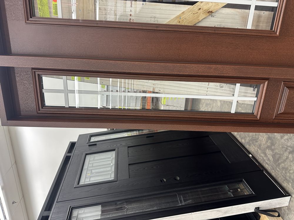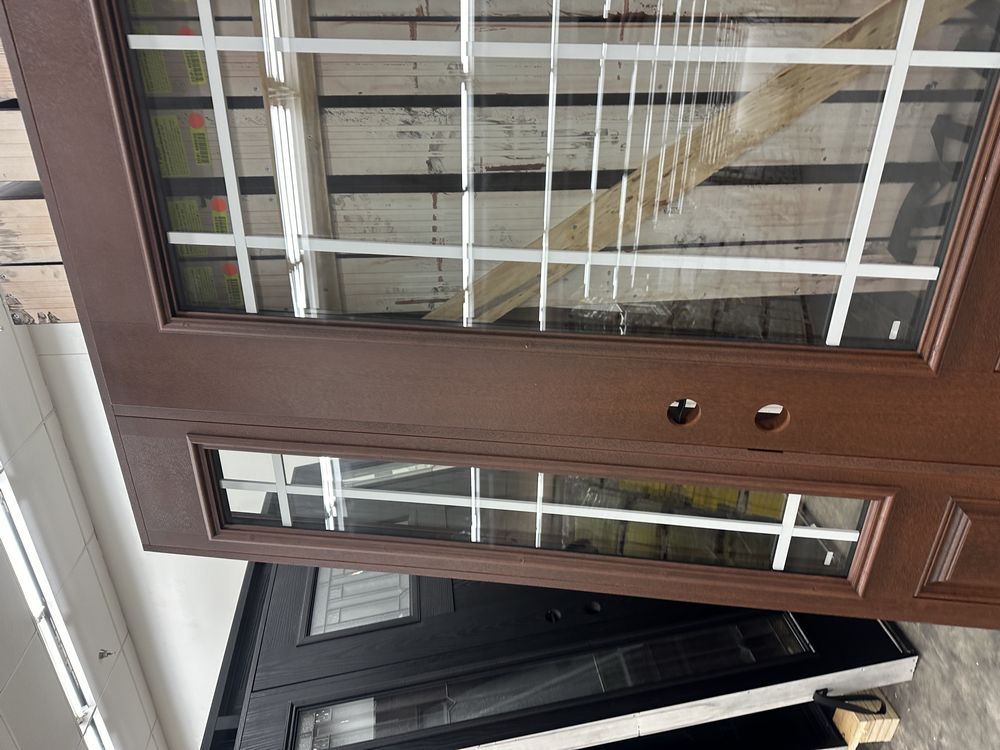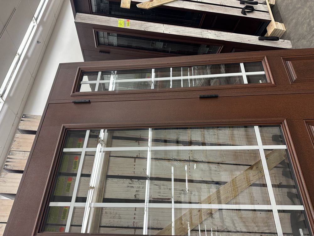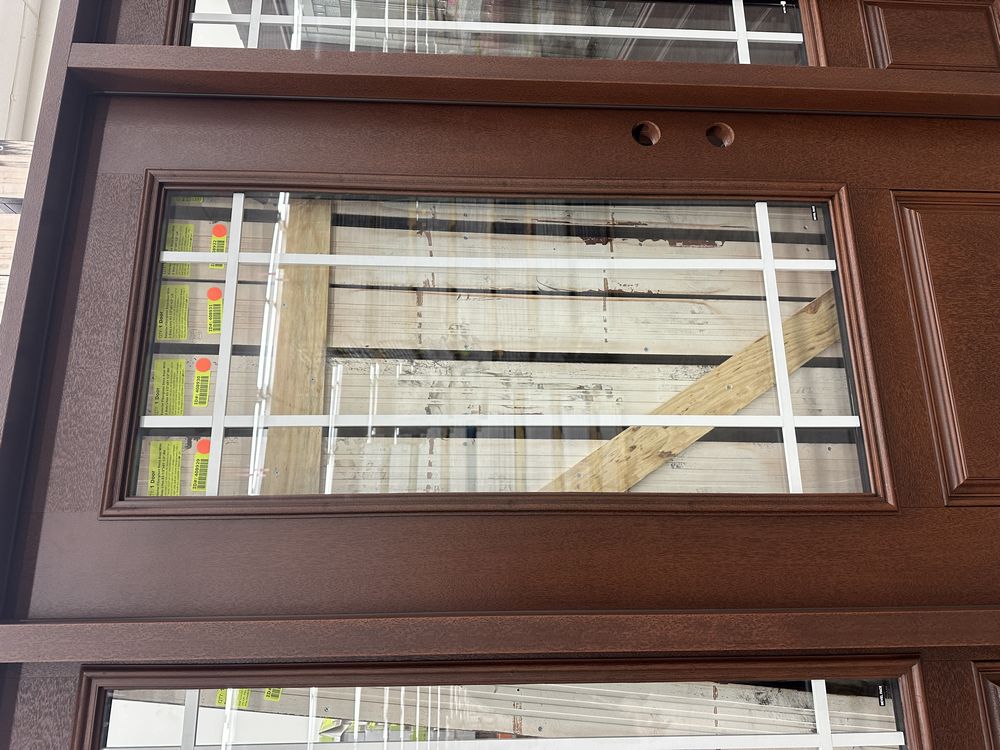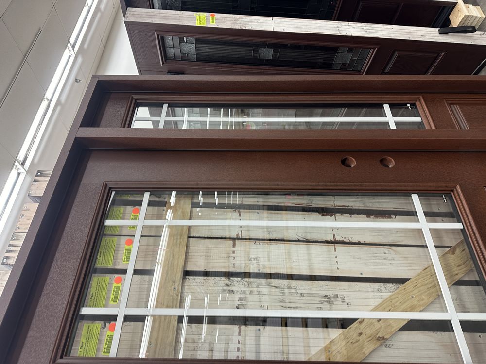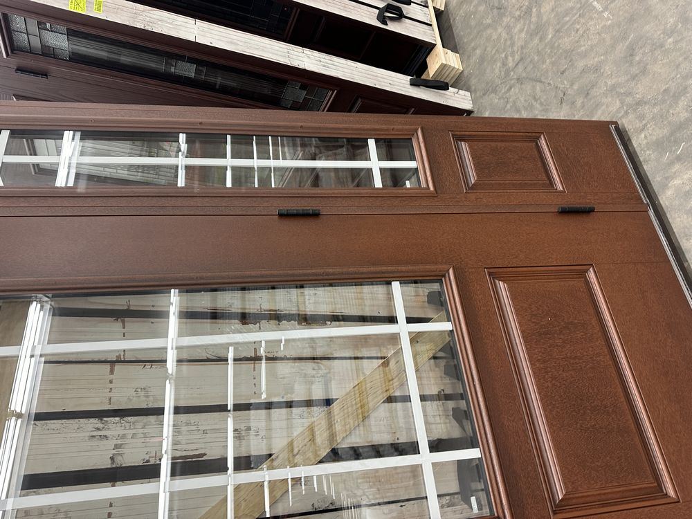 Exterior Fiberglass Deco Door With 2 Side Lites 63 1/2"x81 1/2" LH. Stained Finish, 2-12" Side Lites, 36" Decorative Door, 3/4"x4 1/2" Jambs, 14 1/2"x24 1/2" Glass, GBG Pattern, Grade: A. Weight: 180. Sold by: Door. Sold as: Price X Quantity. Inventory #: 5210-EXT FG GBG STND 1-3-1