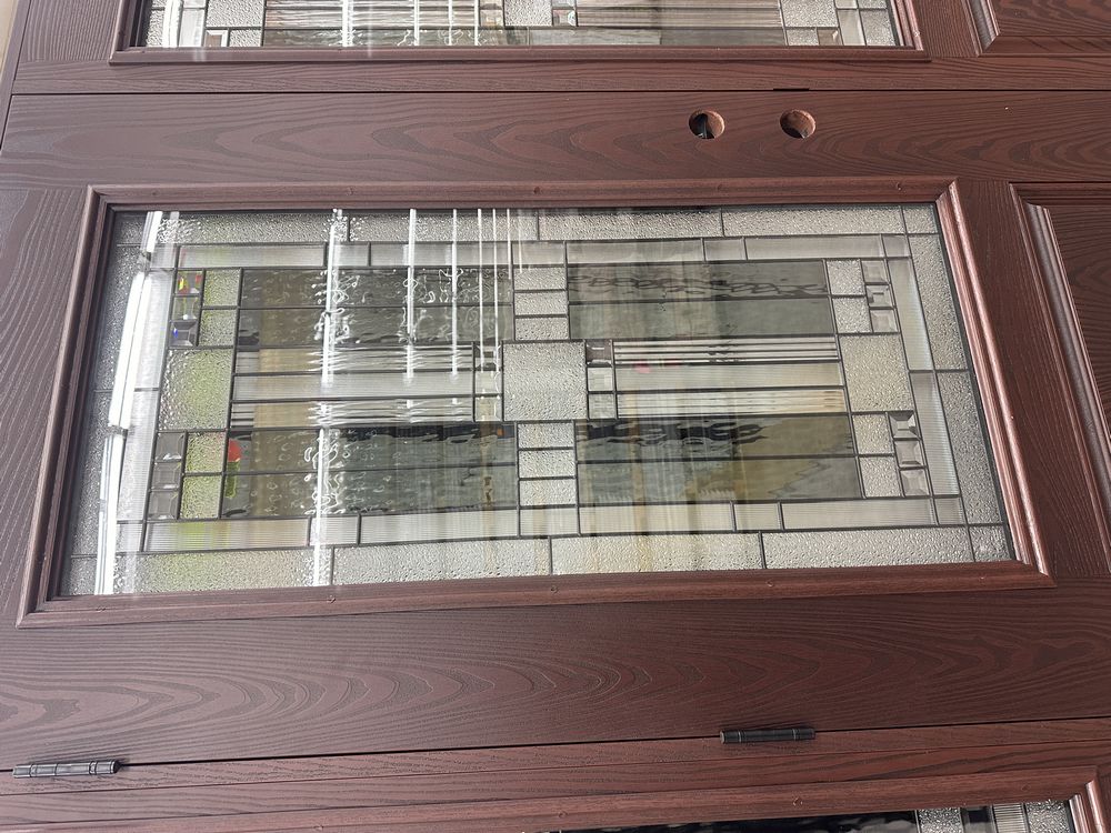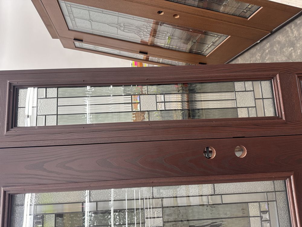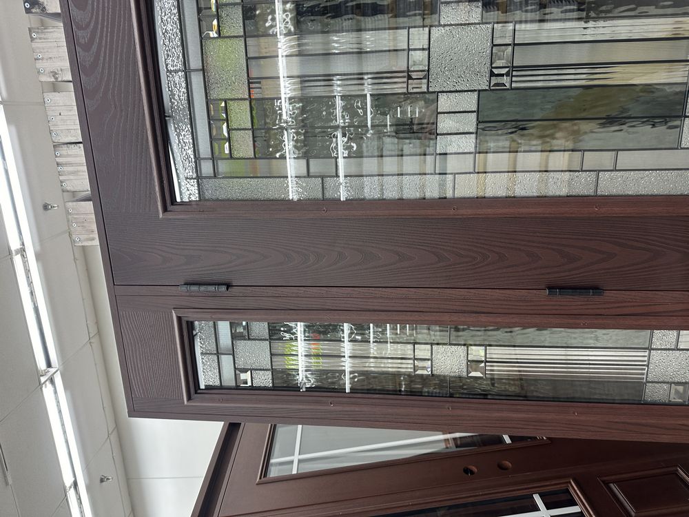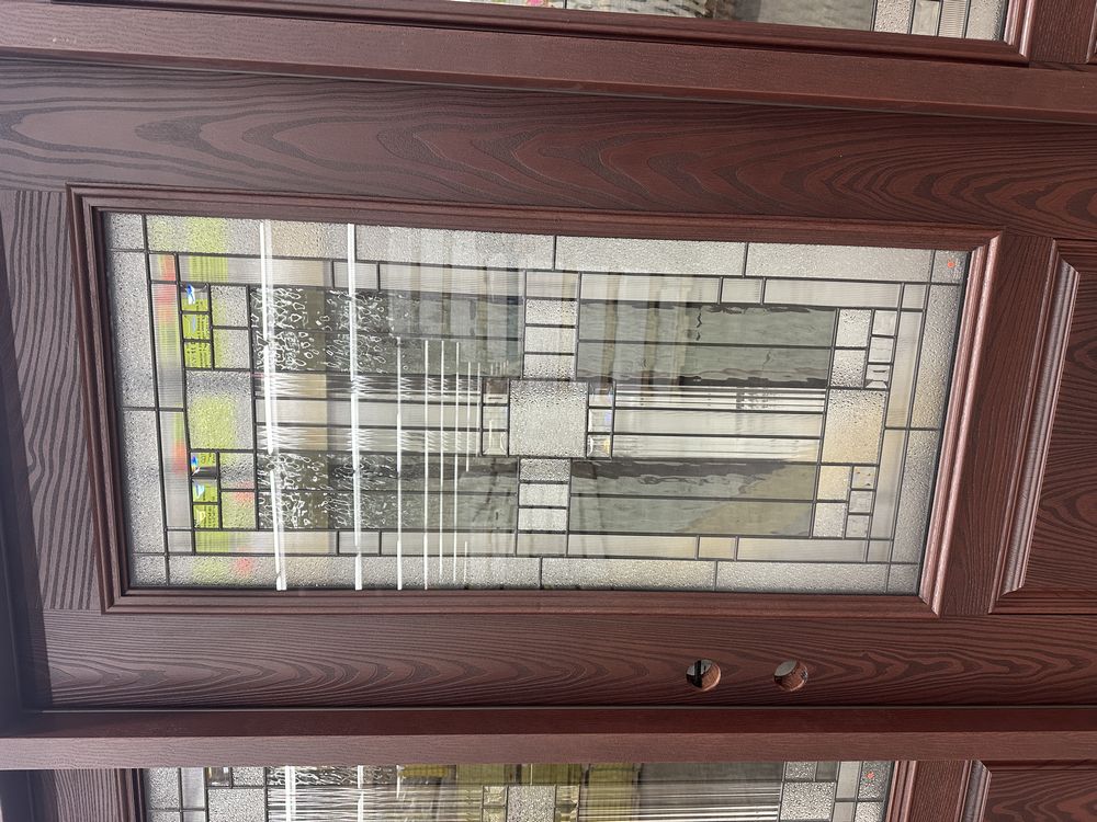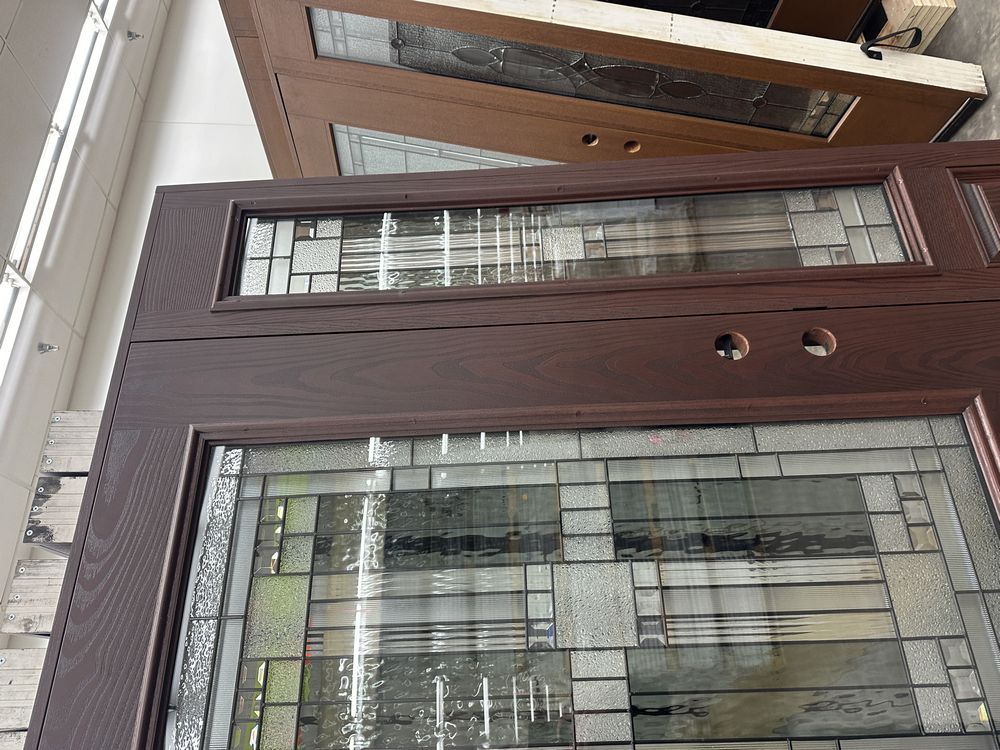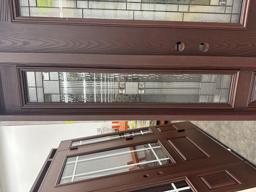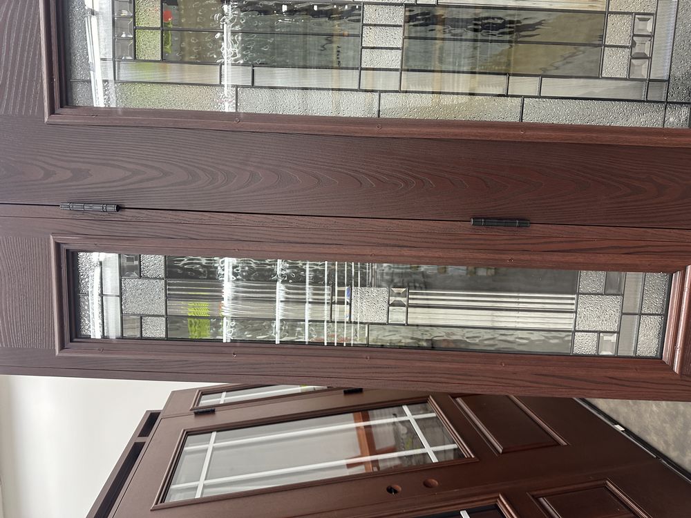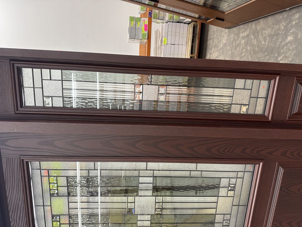 Exterior Fiberglass Deco Door With 2 Side Lites 63 1/2"x81 1/2" RH. Stained Finish, 2-12" Side Lites, 36" Decorative Door, 3/4"x4 1/2" Jambs, 14 1/2"x24 1/2" Glass, Chang'An Pattern, Grade: A. Weight: 180. Sold by: Door. Sold as: Price X Quantity. Inventory #: 5210-EXT FG CH'A STND 1-3-1