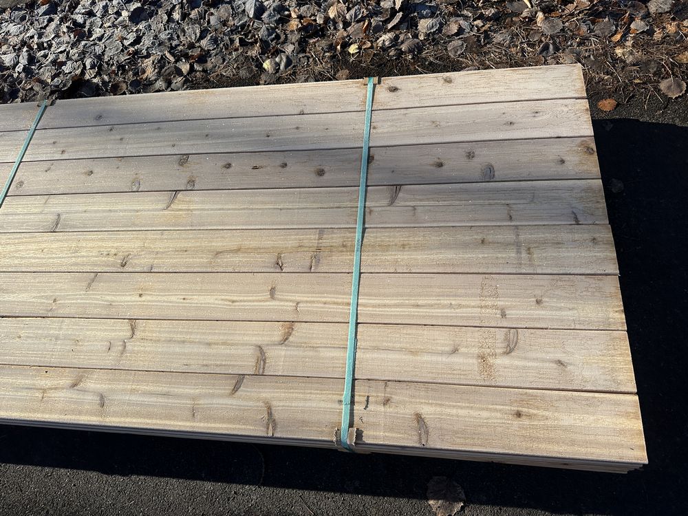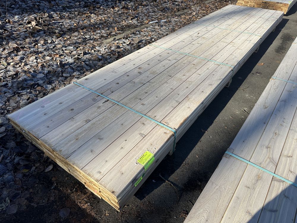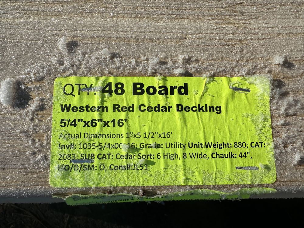 Western Red Cedar Decking 5/4"x6"x16'. Benefits & Advantages: Premium Aesthetic Appeal – Rich reddish-brown tones with a natural variation that adds warmth and character. Highly Durable – Naturally resistant to rot, decay, and insects thanks to its high oil content. Lightweight & Easy to Work With – Cuts, drills, and nails easily, making it a contractor favorite. Environmentally Friendly – Sustainably harvested and highly renewable compared to synthetic materials. Excellent Dimensional Stability – Less likely to warp or shrink compared to other softwoods. Auctioneers Notes: Western Red Cedar Decking is the perfect blend of natural beauty, durability, and ease of installation. With its rich tones, lightweight structure, and natural resistance to the elements, this premium decking enhances any outdoor space with warmth and timeless elegance. Whether you're a homeowner or contractor, this high-quality material offers exceptional performance and effortless workability. Don't miss your chance to bid and bring lasting beauty to your deck project! Actual Dimensions 1"x5 1/2"x16', 480 Board Foot, Grade: Utility. Weight: 880. Sold by: Board. Sold as: Price X Quantity. Inventory #: 1035-5/4x06x16