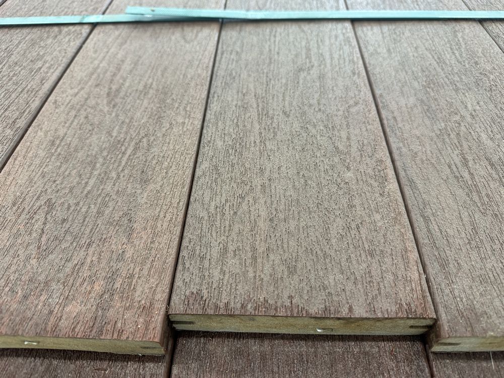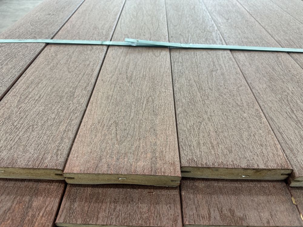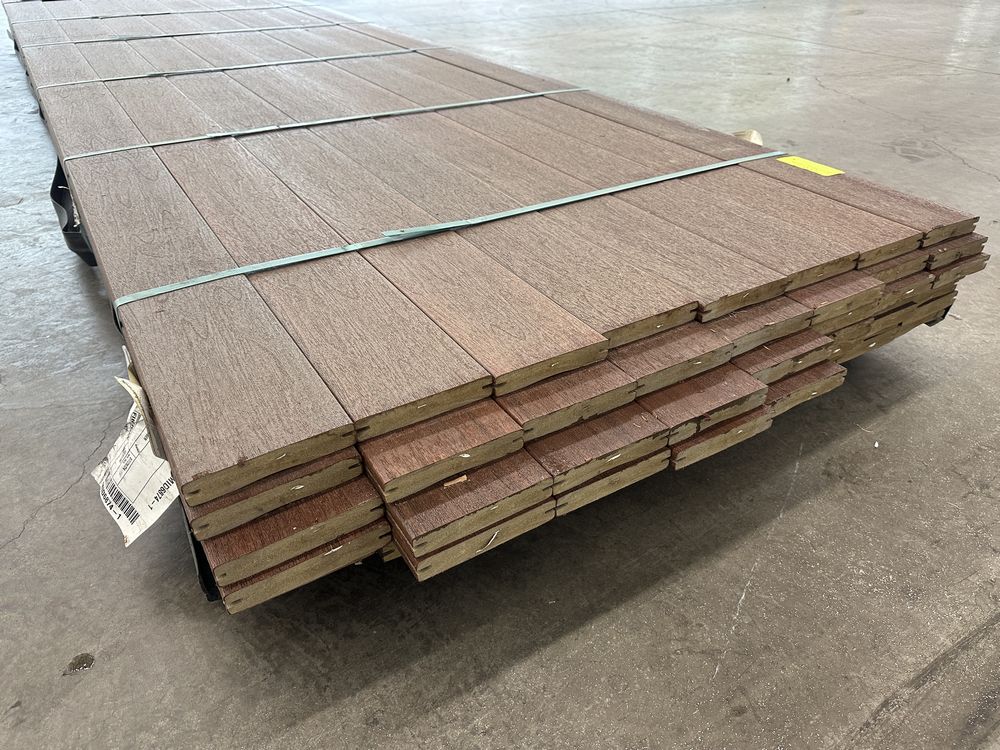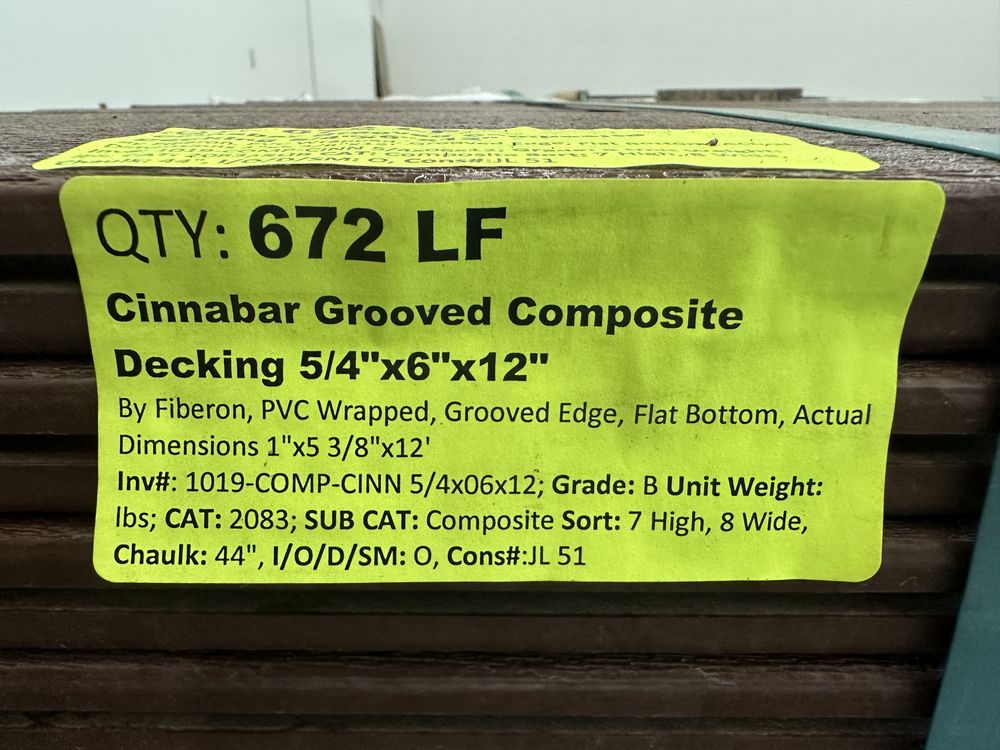 Cinnabar Grooved Composite Decking 5/4"x6"x12'. By Fiberon, PVC Capped, Grooved Edge, Flat Bottom, 56 Boards Total, Actual Dimensions 1"x5 3/8"x12' Grade: B. Weight: x. Sold by: Linear Foot. Sold as: Price X Quantity. Inventory #: 1019-COMP-CINN 5/4x06x12
