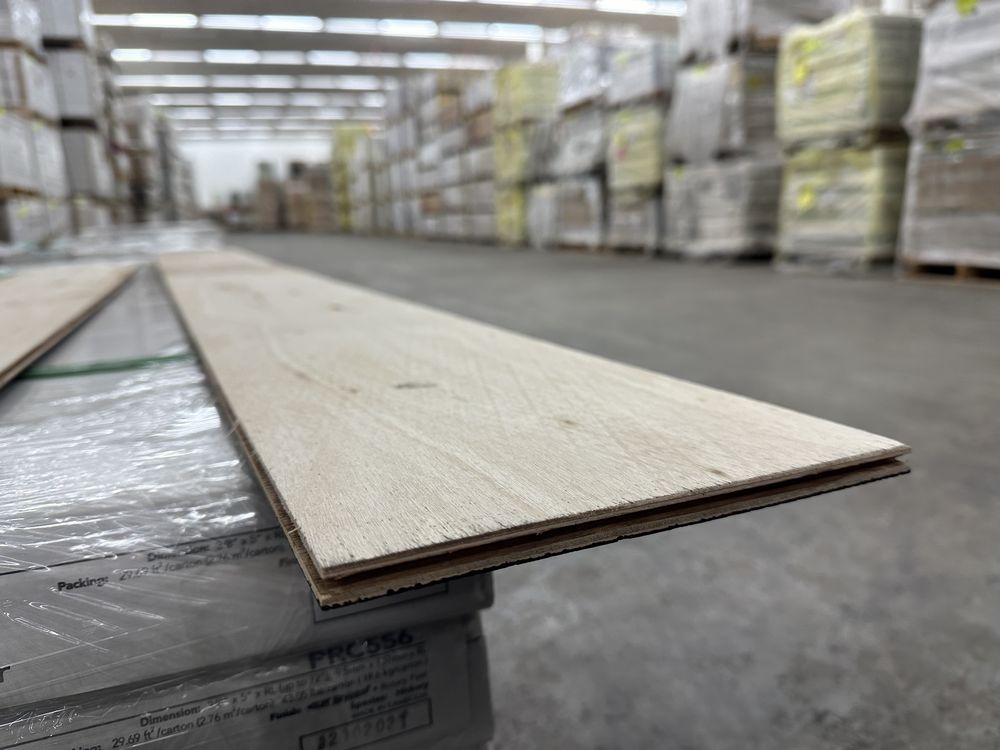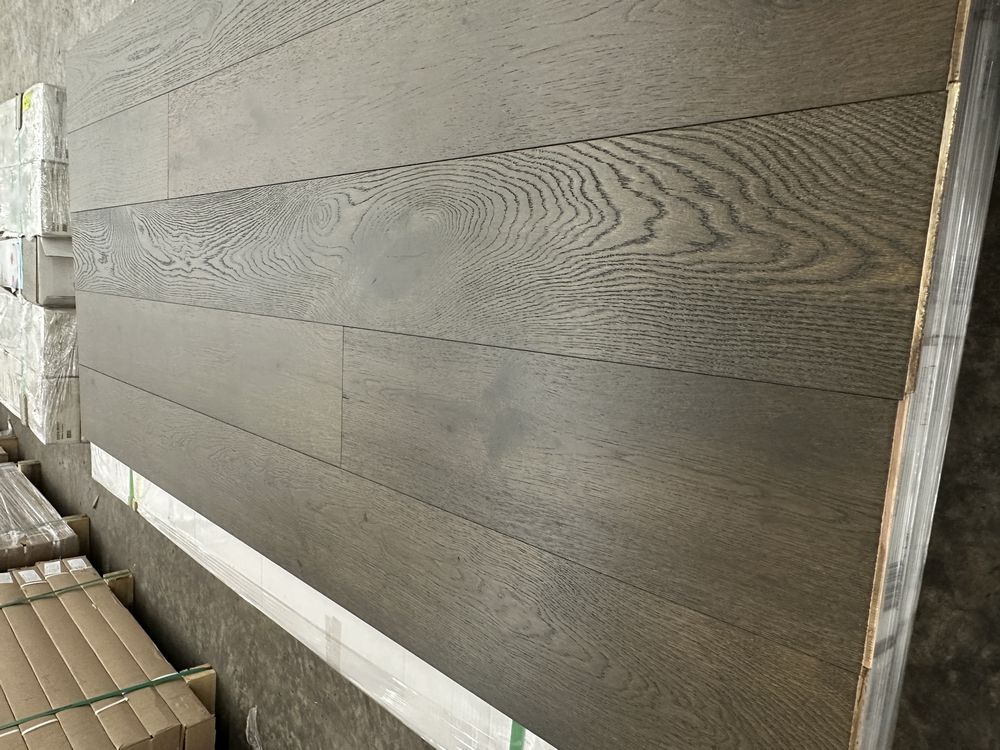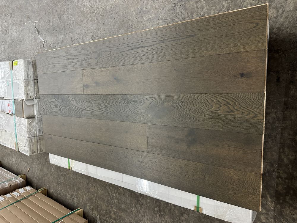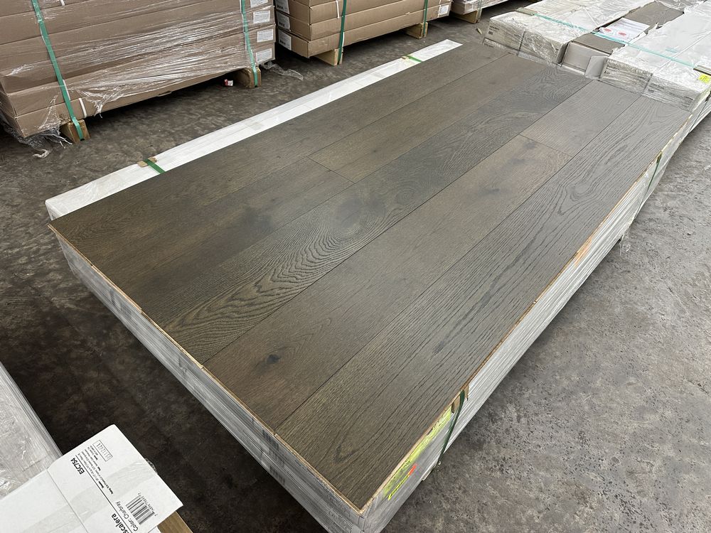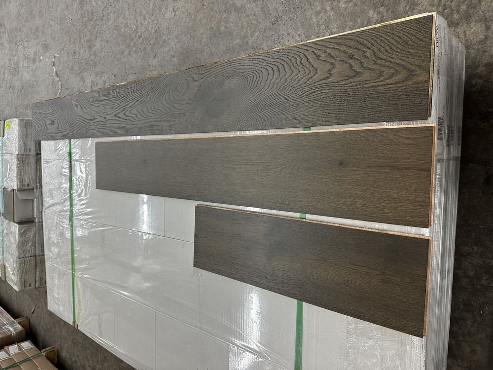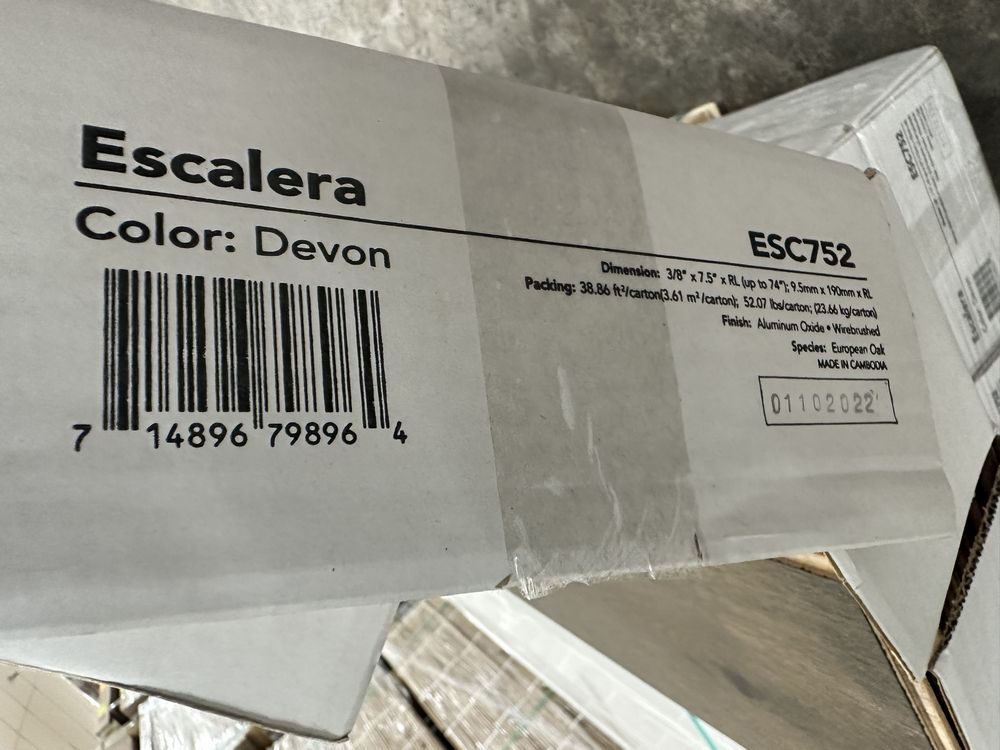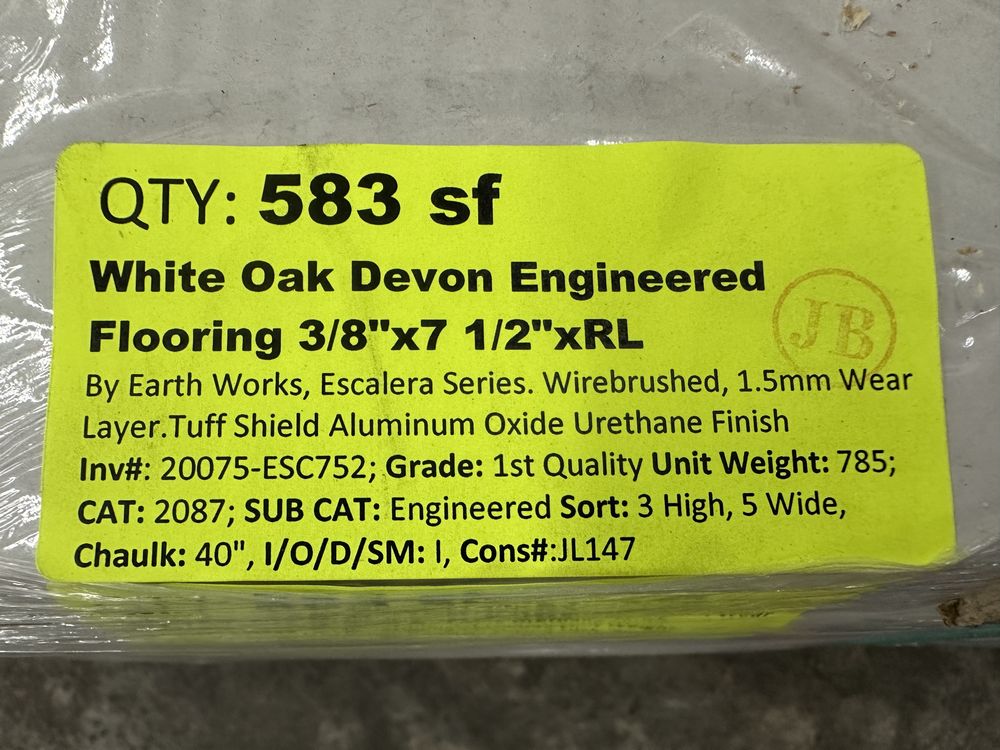 White Oak Devon Engineered Flooring 3/8"x7 1/2"xRL. By Earth Works, Escalera Series, Wire Brushed, 1.5mm Wear Layer, Tuff Shield Aluminum Oxide Urethane Finish, 38.86 sq ft Per Box, 15 Boxes, Grade: 1st Quality. Weight: 785. Sold by: Square Foot. Sold as: Price X Quantity. Inventory #: 20075-ESC752