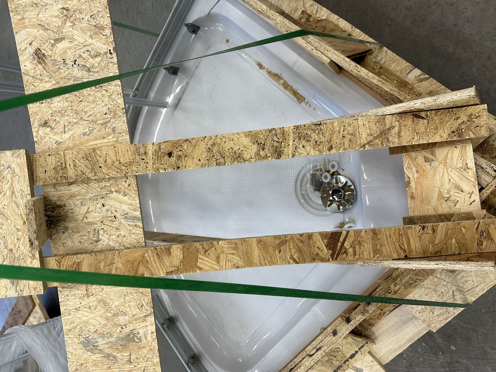 Shower Glass with Pan and Base 36"x36"x86". Glass Enclosure and Shower Pan Only. This shower is unassembled, the assembly option is not available on this set. . Weight: X. Sold by: Piece. Sold as: Price X Quantity. Inventory #: 5090-SF-3636 CD